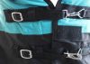 Challenger 1200 Denier turnout heavy-weight winter blanket is constructed with a rip-stop waterproof, windproof, and breathable poly outer shell with 210 lining. 400 grams of poly fill keeps your horse warm and dry in the winter. Blanket features adjustable double buckle front with snap closure, cross surcingles, neck adjust, and elastic leg straps for a secure and snug fit. Tail flap for added protection. Shoulder gussets offers freedom of movement. Fleece wither protection. Nickle plated hardware.
