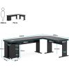 - 83 x 63 Spacious DesktopCreate a productivity home office without sacrificing space with this L-shaped design computer desk. With spacious 82.67 x 62.99 large desktop, you can easily set up multiple monitors and laptops, and along with room to keep printer, table lamp, plants and knickknacks