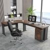 - Stylish Industrial Charm Your office deserves to be stylish too! Shows off your unique taste with this industrial style L-shaped table. It features a trendy, rustic brown finish complemented by a sleek black steel frame, strikes an industrial vibe that adds an on-trend touch to your workspace. It is suitable for any home, office to learning, gaming or working.
