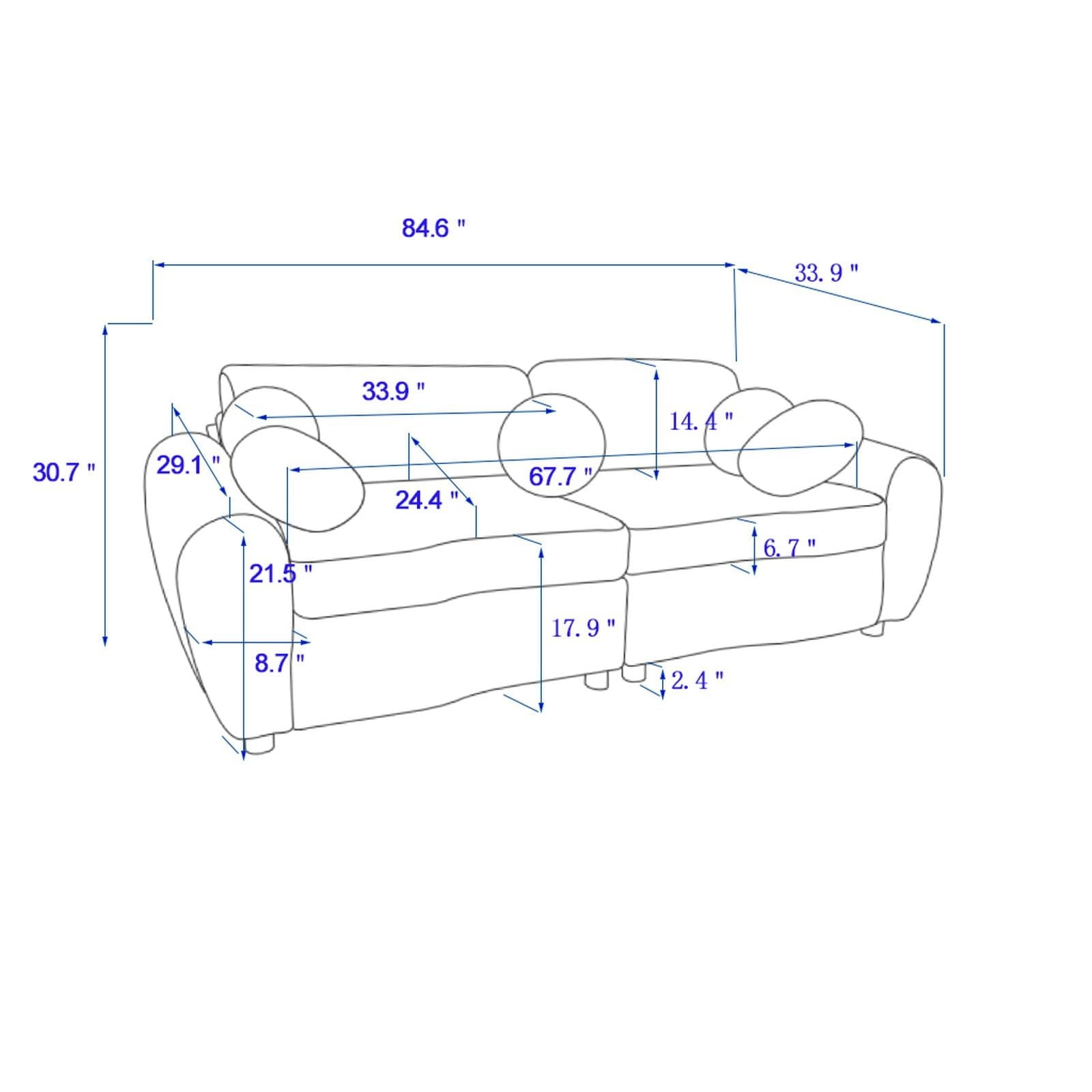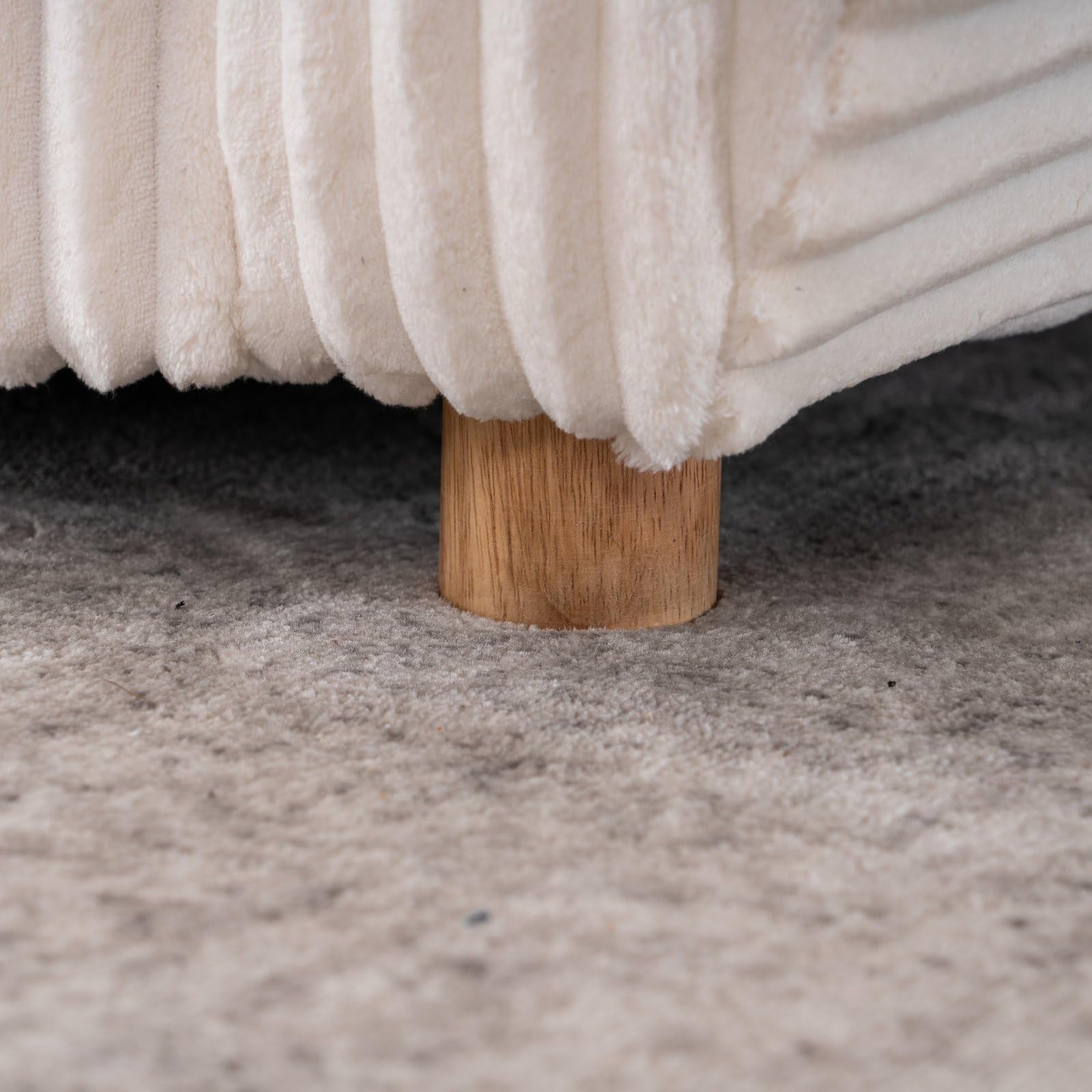 Elevate your space with this modern loveseat sofa, featuring a plush white corduroy upholstery that adds texture and sophistication. The 84-inch sectional couch offers ample seating with a 67.7″ seat width, for cozy movie nights or relaxing with a book. Crafted with a solid wood frame, this upholstered sofa ensures durability and timeless appeal. The 17.9″ seat height and 24.4″ seat depth provide ergonomic comfort, while the wooden legs add rustic charm. Ideal for apartments, bedrooms, or home offices, this small sofa blends versatility with style. Easy assembly makes it a hassle-free addition to your decor.