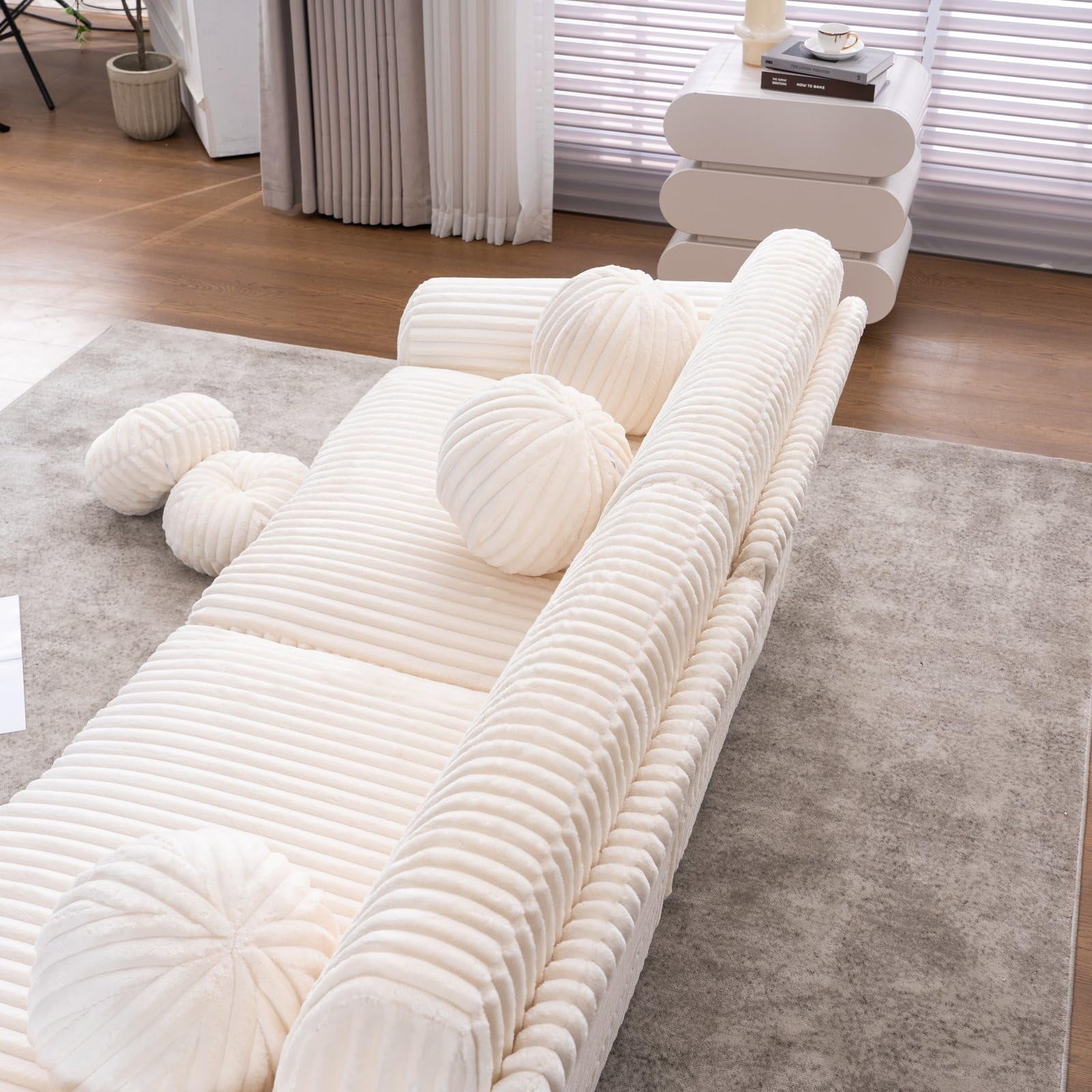 - Modern Loveseat Sofa: Sleek white corduroy fabric and clean lines bring contemporary elegance to any room.