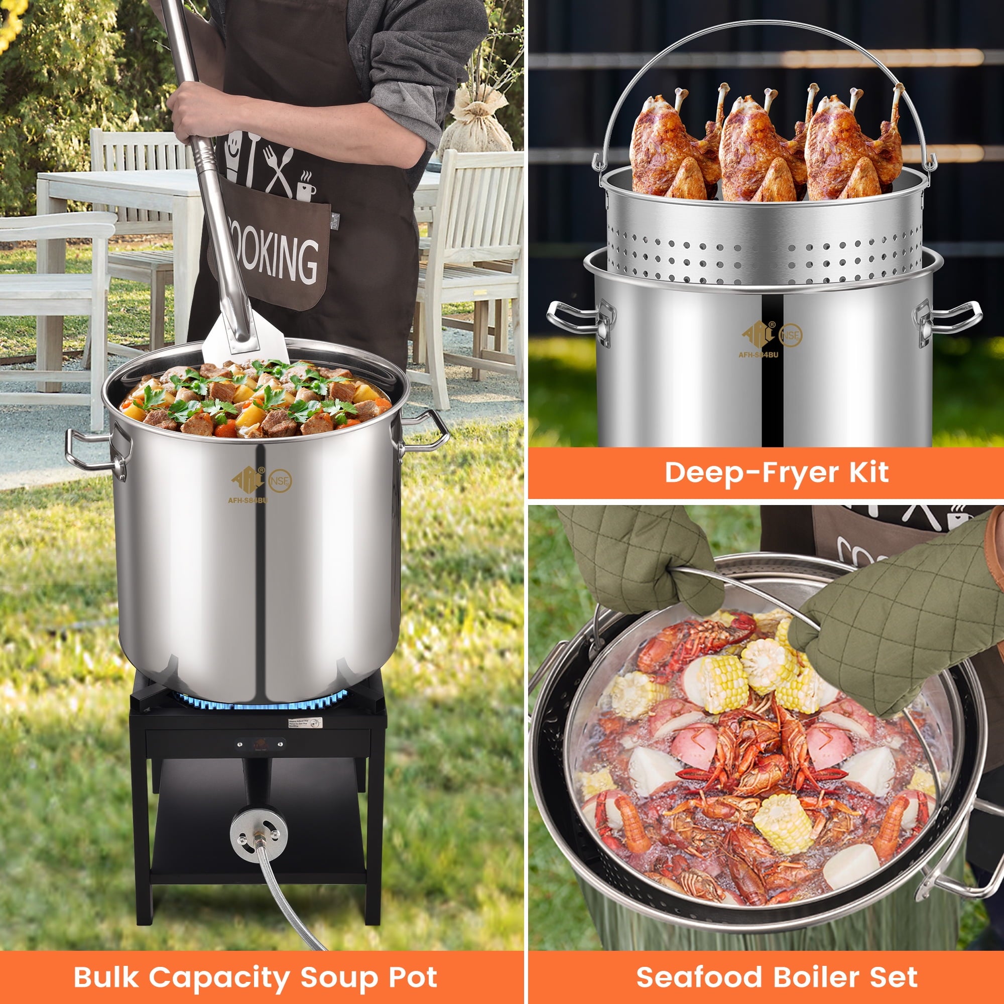 • HANDS-FREE & QUICK DRAIN: Upgraded handle on the basket design for hands-free draining and hassle-free lifting. this large seafood boiling pot can also transform into a turkey fryer.