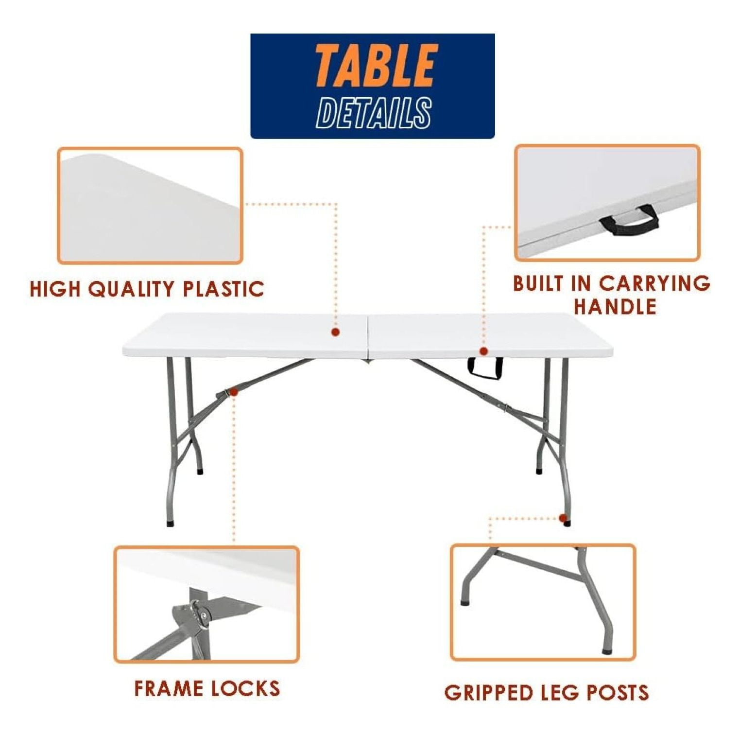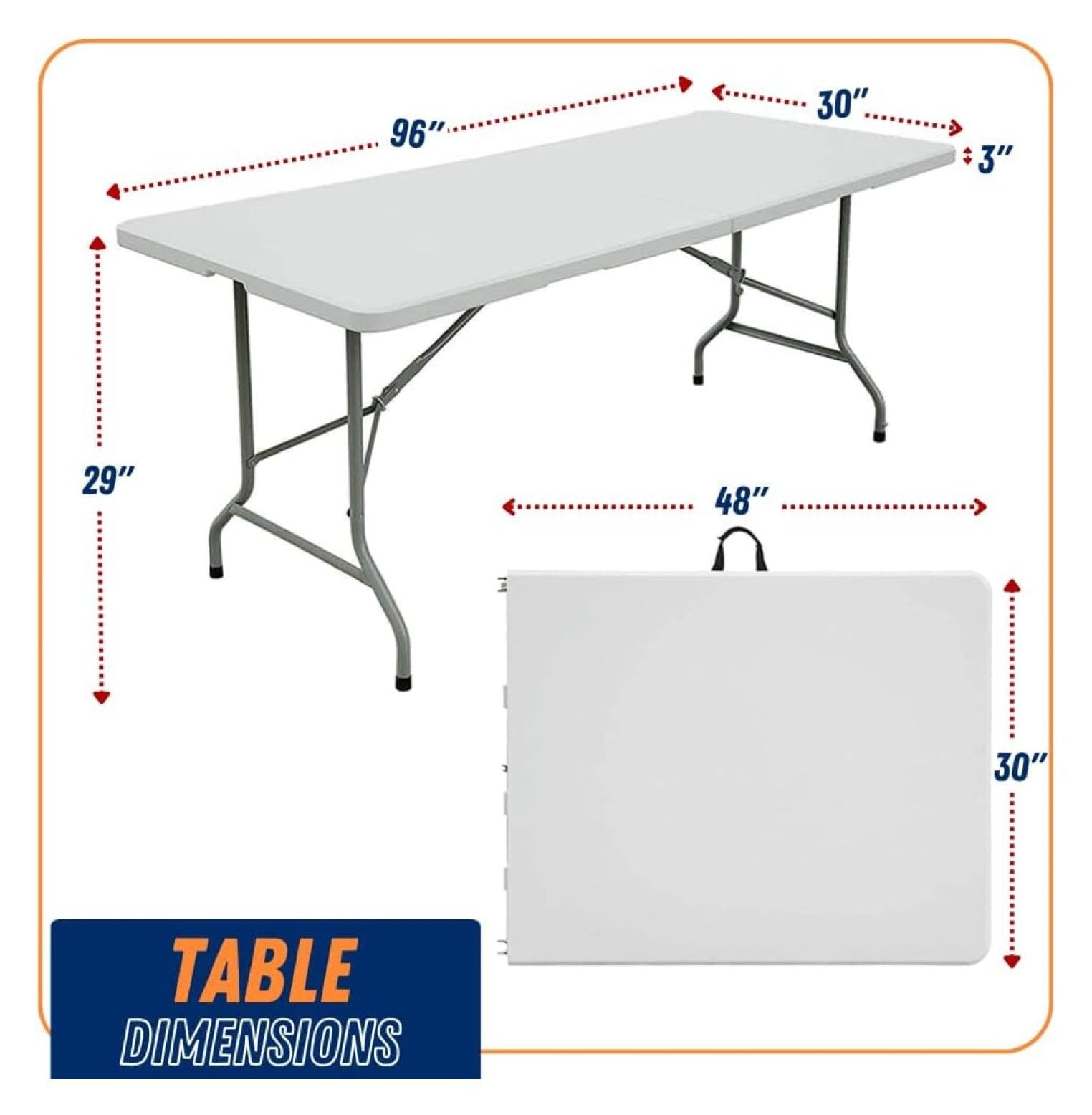 - STURDY SUPPORT: Powder-coated steel legs, frame joint locks, and non-slip rubber feet help to keep the table in place during every event