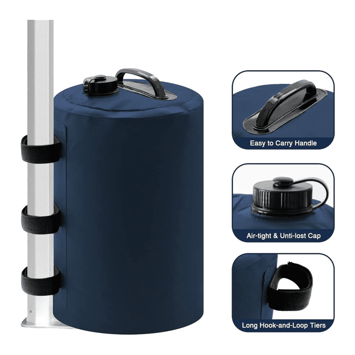 The canopy weights feature convenient wide handle and check valve spout to release the water pressure under cap for a leakproof system