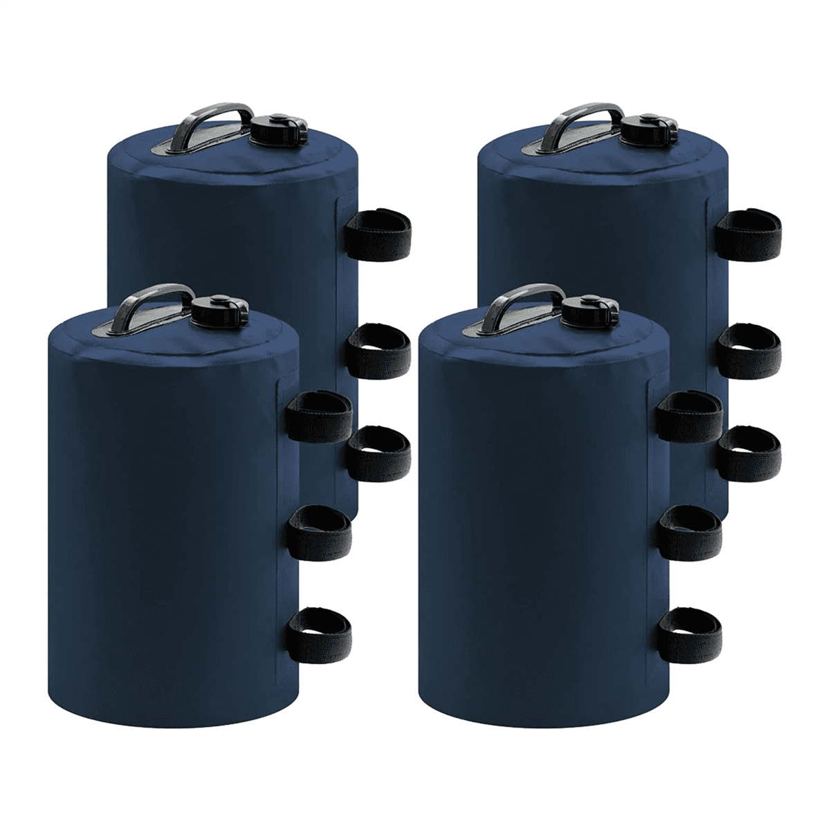 • just fill them up with water, tie them up to canopy posts, and they weight your canopy down quietly regardless of wind blowing