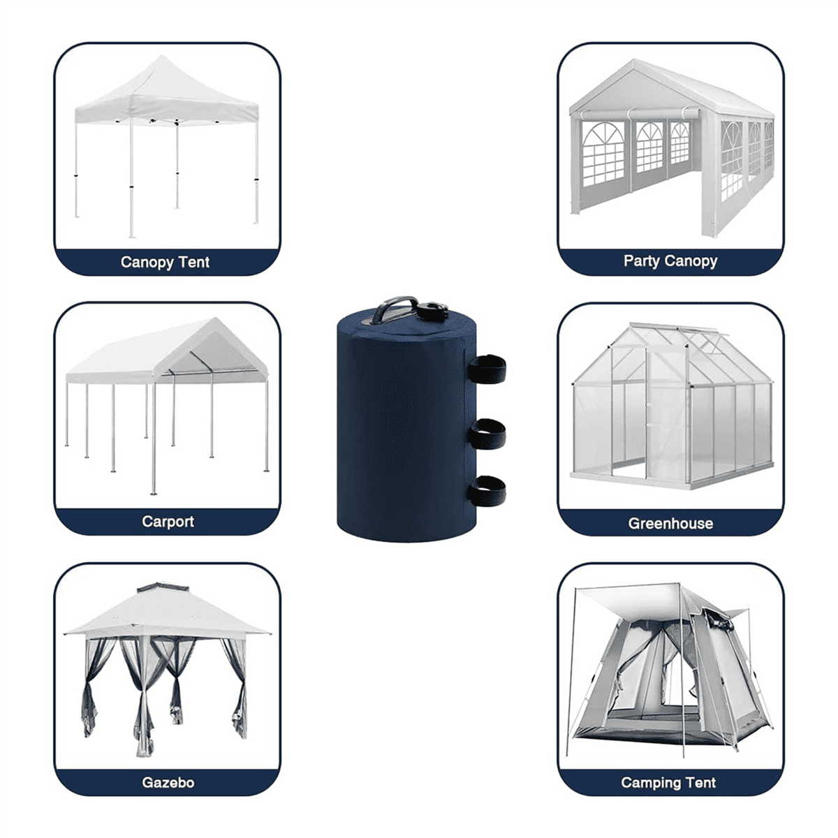 • weight bag can be easily used to build tents, , camping tents, pavilions, etc. It can easily and perfectly improve the stability of the structure and prevent it from shaking and tipping in windy weather.