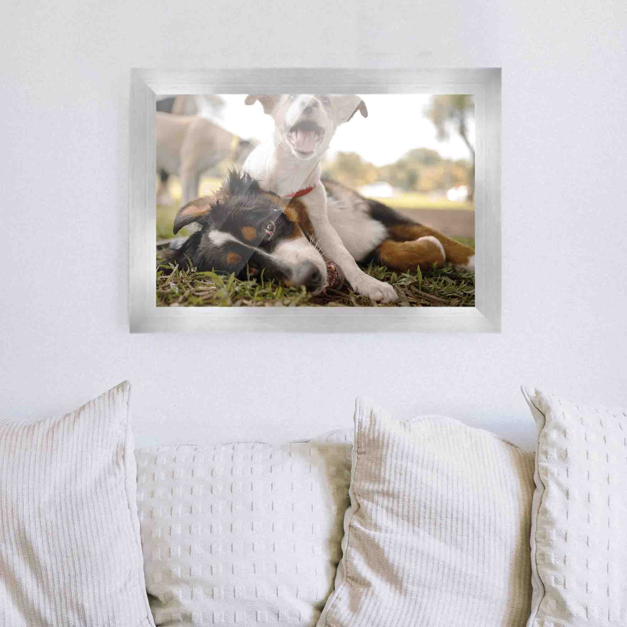 - Proudly made in the USA.Handcrafted Silver Wood Picture Frame for Family Photos, Art Prints, Canvases, Documents, Kids Drawings, Diplomas, Certificates, and More Measuring 8×22 InchesOverall Frame Dimensions Measure 11×25 Inches | Frame Moulding Width: 1.5 Inches | Frame Rabbet Depth: 0.4375 InchesOur Frames Come Complete with UV Resistant Acrylic Front, Acid Free Foam Board Backing, and Hanging Hardware.Hanging hardware is included but not installed—easily attach for vertical or horizontal display!Proudly Custom Made to Order in the USA!