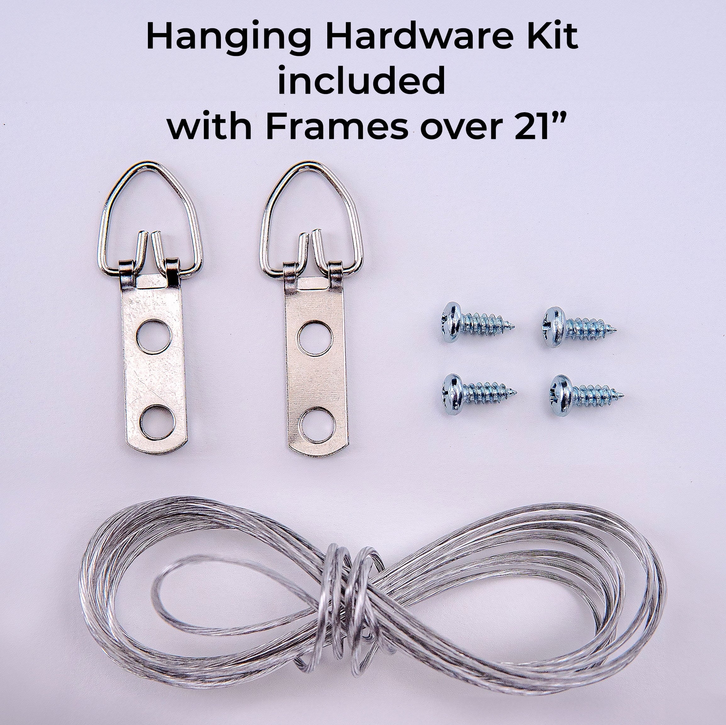 Handcrafted Silver Wood Picture Frame for Family Photos, Art Prints, Canvases, Documents, Kids Drawings, Diplomas, Certificates, and More Measuring 8×22 Inches Overall Frame Dimensions Measure 11×25 Inches | Frame Moulding Width: 1.5 Inches | Frame Rabbet Depth: 0.4375 Inches Our Frames Come Complete with UV Resistant Acrylic Front, Acid Free Foam Board Backing, and Hanging Hardware. Hanging hardware is included but not installed—easily attach for vertical or horizontal display! Proudly Custom Made to Order in the USA!