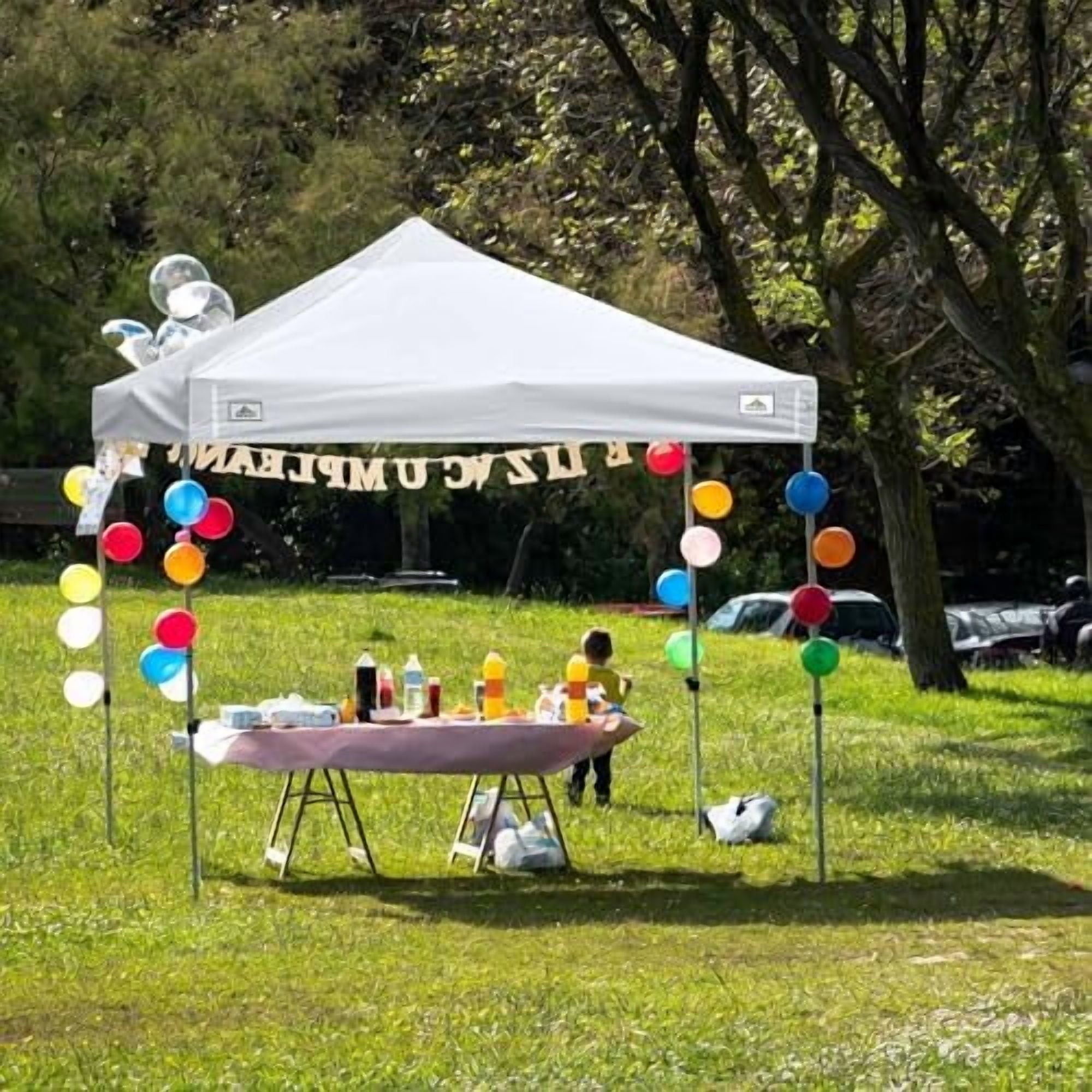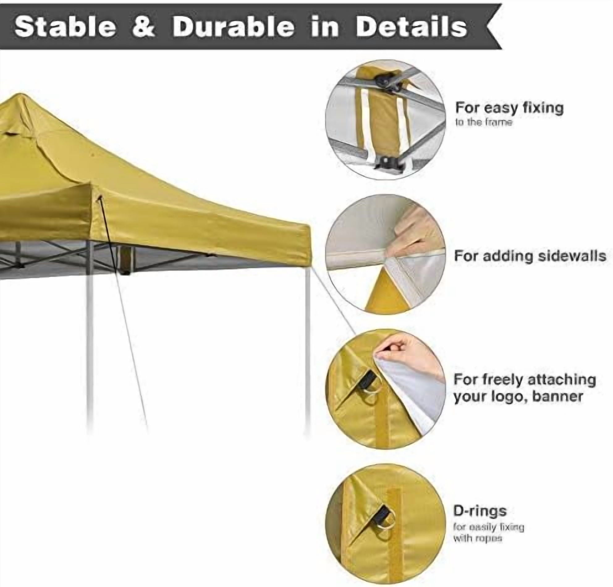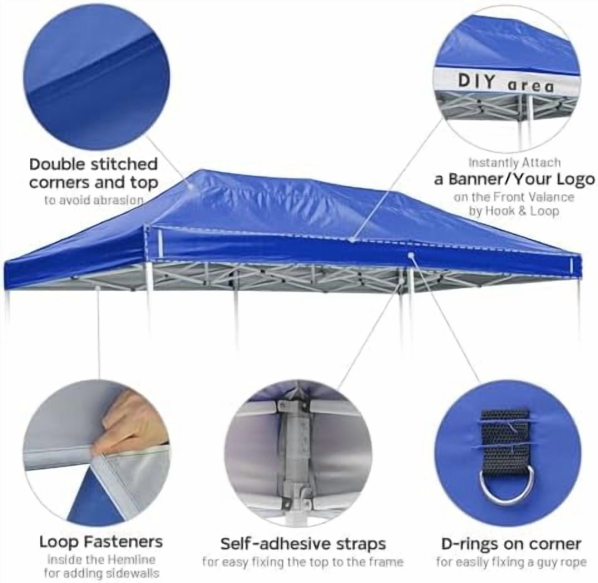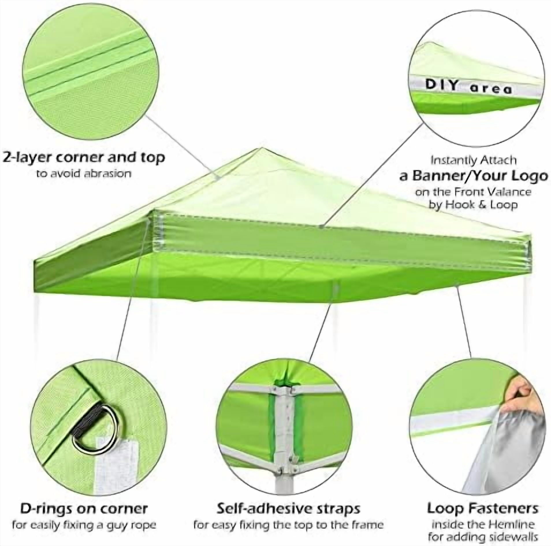 [Easy Installation & Logo Area]: Easy Installation with Loop fasteners, easy fixing the top to the frame; Loop fasteners on the valance for attaching your customized logo or banner