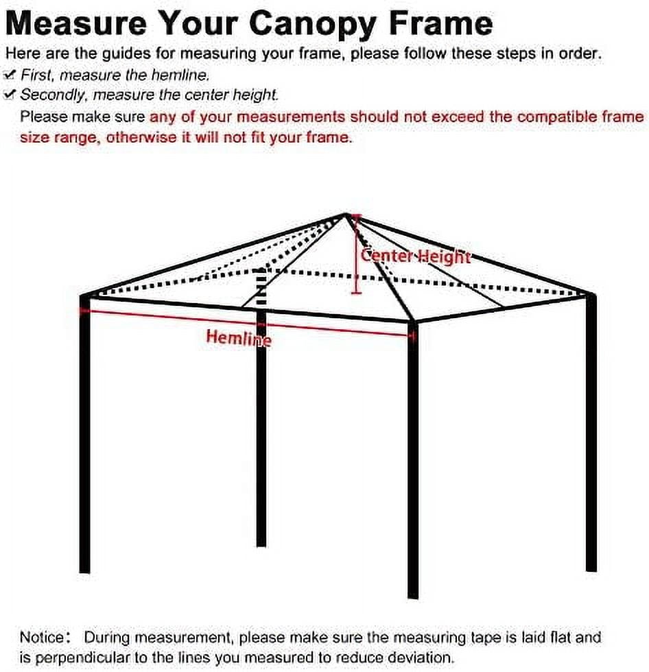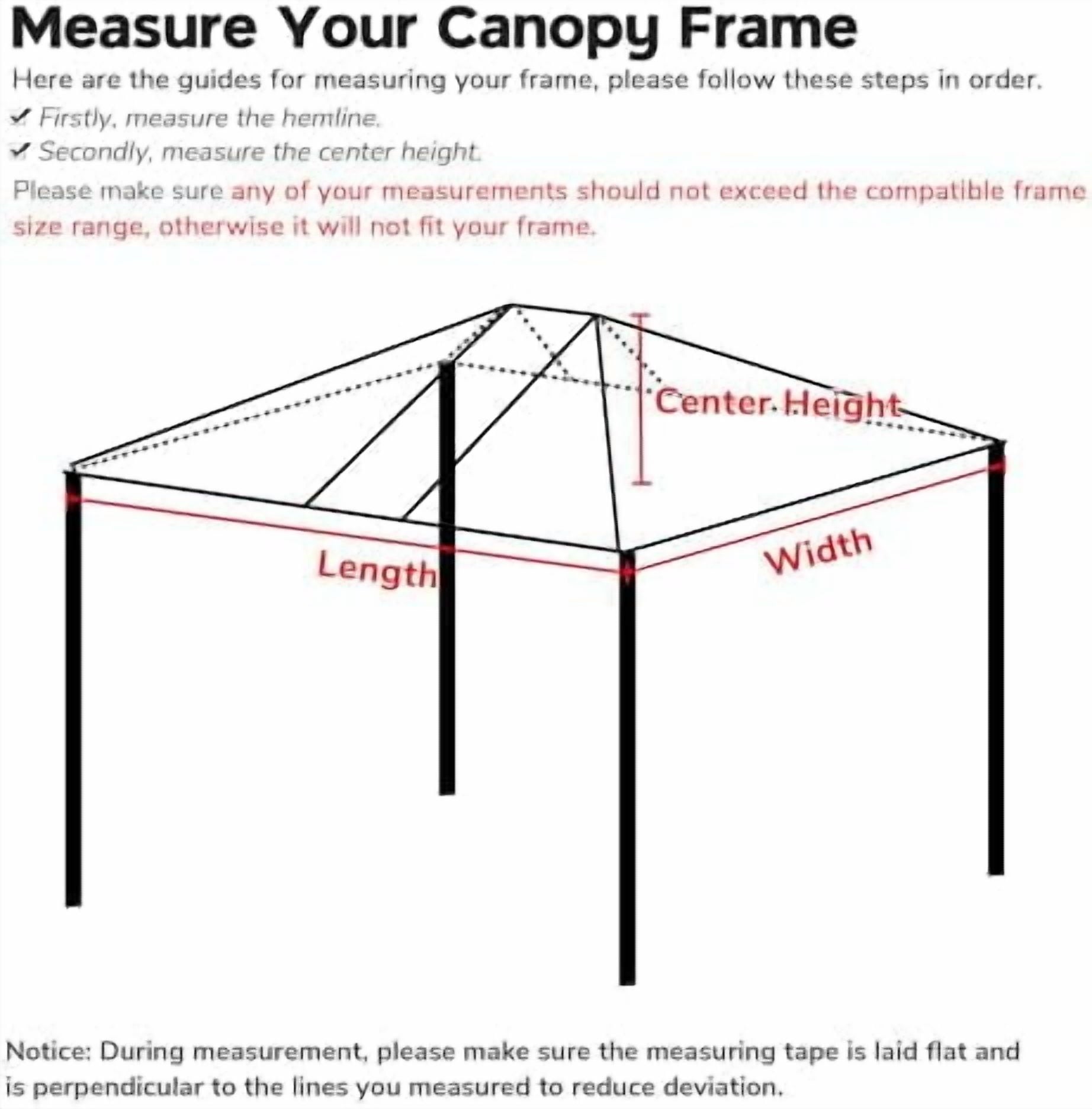 [Measurement Tips]: Helps you determine whether the frame fits our canopy top: 1st, measure the length and width of your tent frame; 2nd, measure the central pole of the frame; Please make sure any of your measurements should not exceed the compatible frame size range, otherwise it will not fit your frame Also, 4 Hemlines with extra loop fasteners sewn inside for adding sidewalls, and please communicate with us if you need to but sidewallsMaterial:fabric Color:Beige Recommended Uses For Product:Tailgate Product Dimensions:4.34″L x 17.33″W x 4.34″H