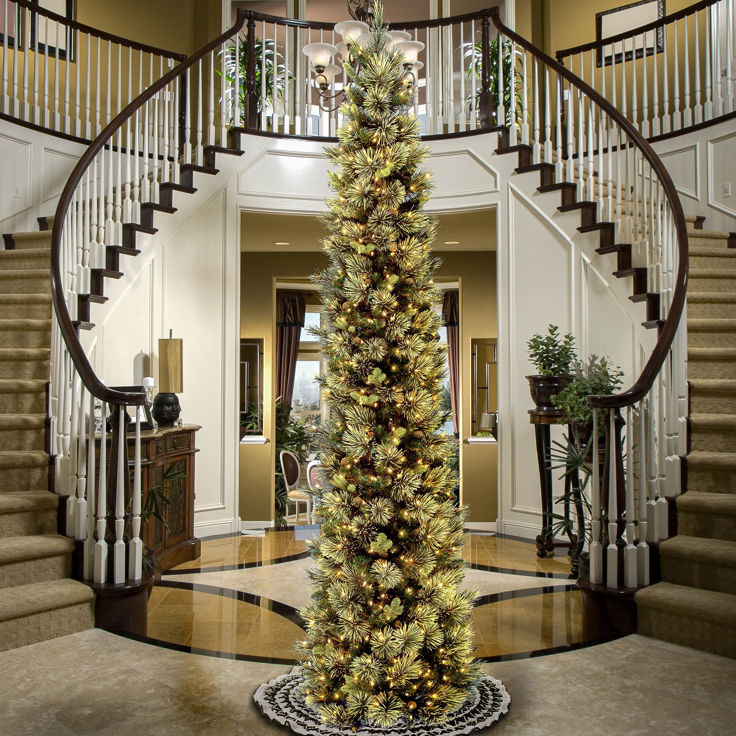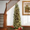 Home Christmas Trees 9 ft Pre-Lit Carolina Pine Slim Artificial Christmas Tree with 800 Clear Lights, Slim Profile
