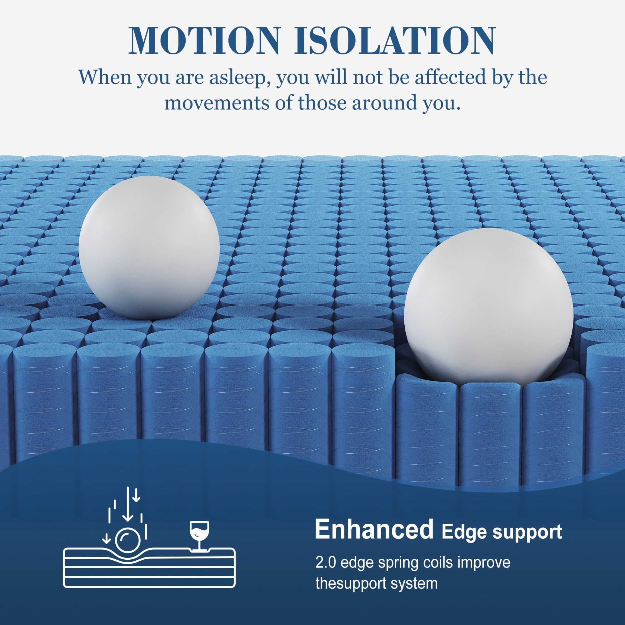 【Motion Isolation】The independent pocket spring work to minize motion tranfer from your partner. Allow you sleep deeply and soundly.