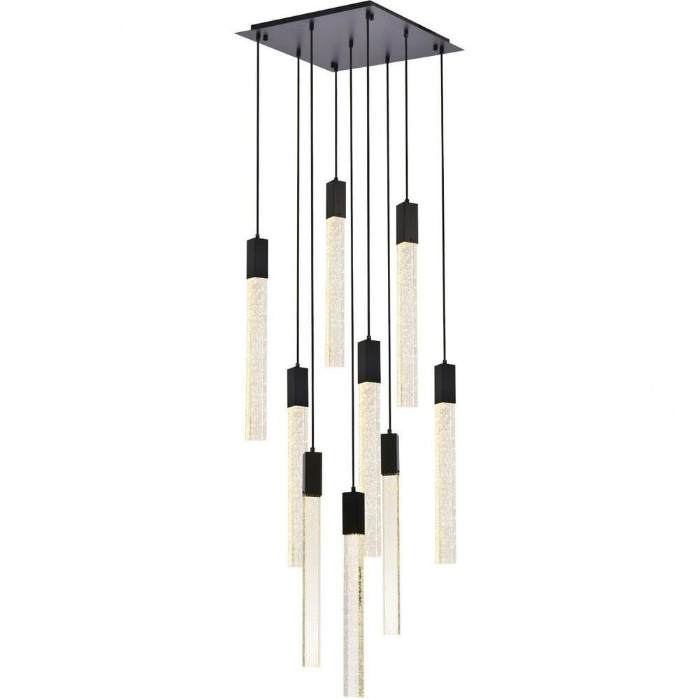 Collection: Blackberry Loke, Material: Metal, Finish Color: Black, Width: 20″, Height: 24″, Length: 20″, Lamping Type: Halogen, Number Of Bulbs: 9, Wattage: 3 Watts, Moisture Rating: Dry Rated, Desc: Crystal raindrops floating in a crystal bar balanced in mid-air. Everything about our Blackberry Loke Collection is ethereal. This collection can be placed in any room of your home as an accent or as a primary feature. When lit up in the evening they are truly an amazing sight, sure to add the wow factor to your home or workplace. illuminated by 9 GU10bulb, (bulb is provided) / light is diffused by the clear seeded crystal bar / each crystal bar is solid from end to end / minimum hanging height of 30 inches and maximum hanging height of 144 inches / the hang cord is adjustable and can be hung at various heights / minor assembly required / perfect for indoor use. ,-Blackberry Loke – 9 Light Pendant In Modern Style-24 Inches Tall and 20 Inches Wide-Black Finish-390-BEL-5047735