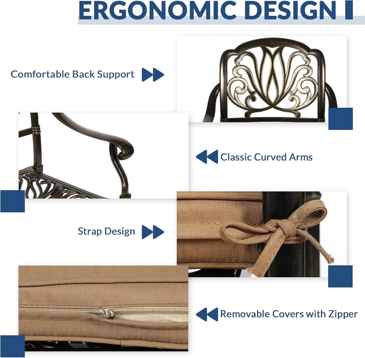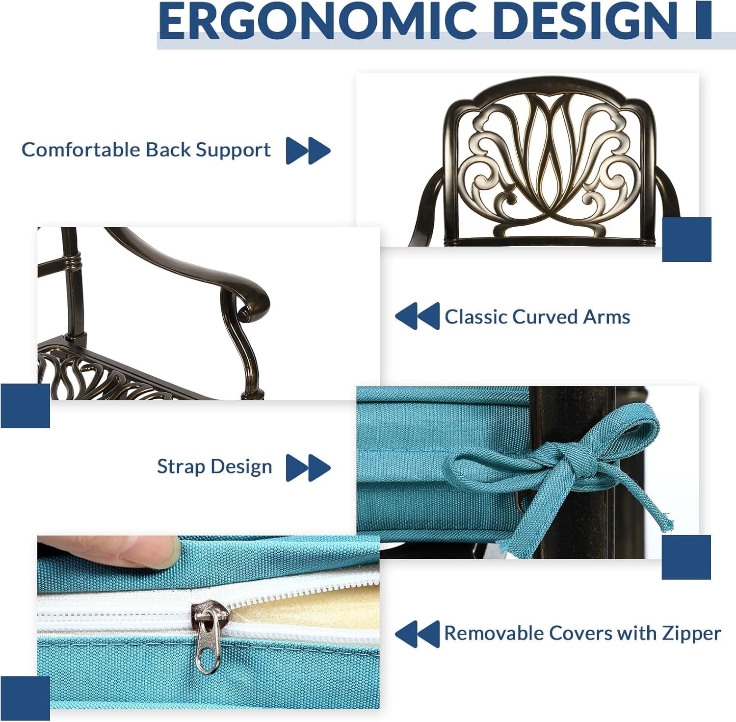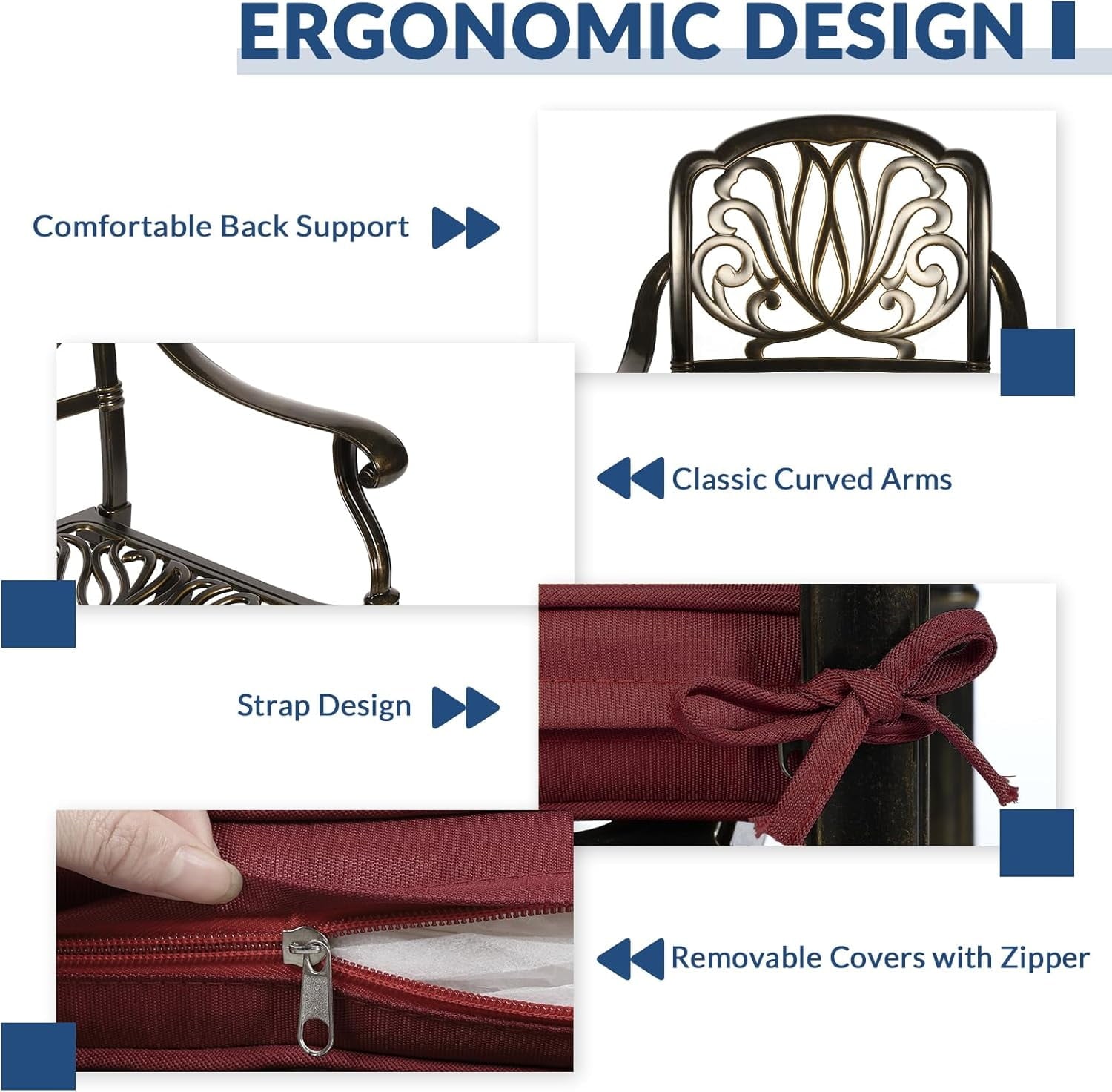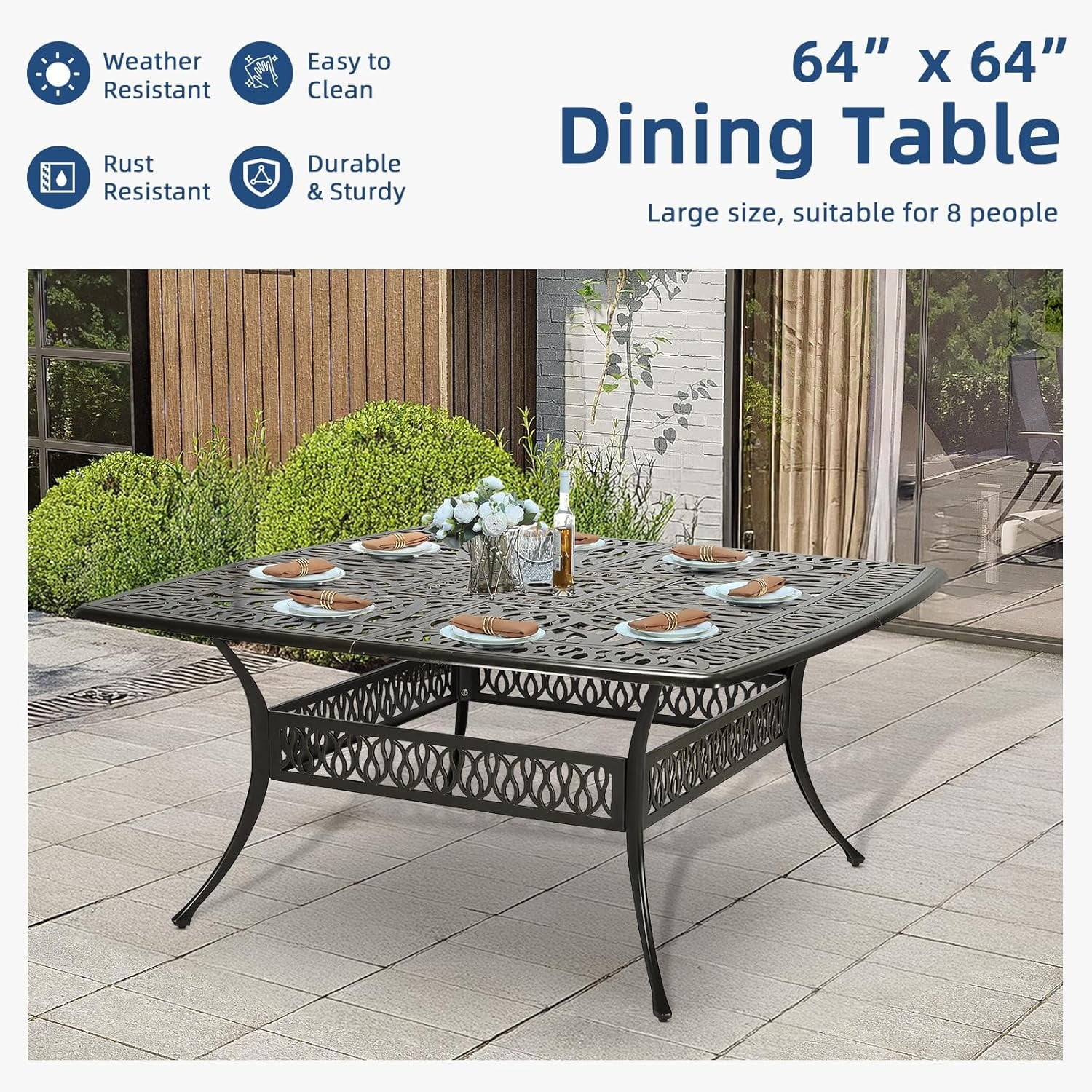 – Cast Aluminum frame is durable, stable, weather resistant and easy to care
