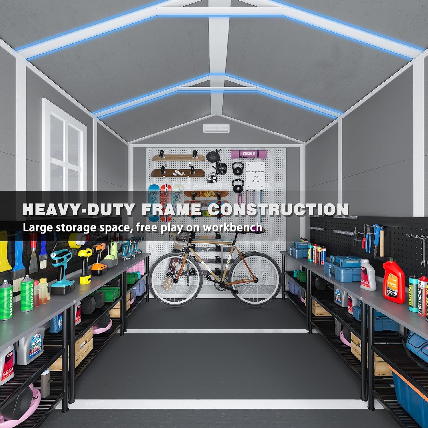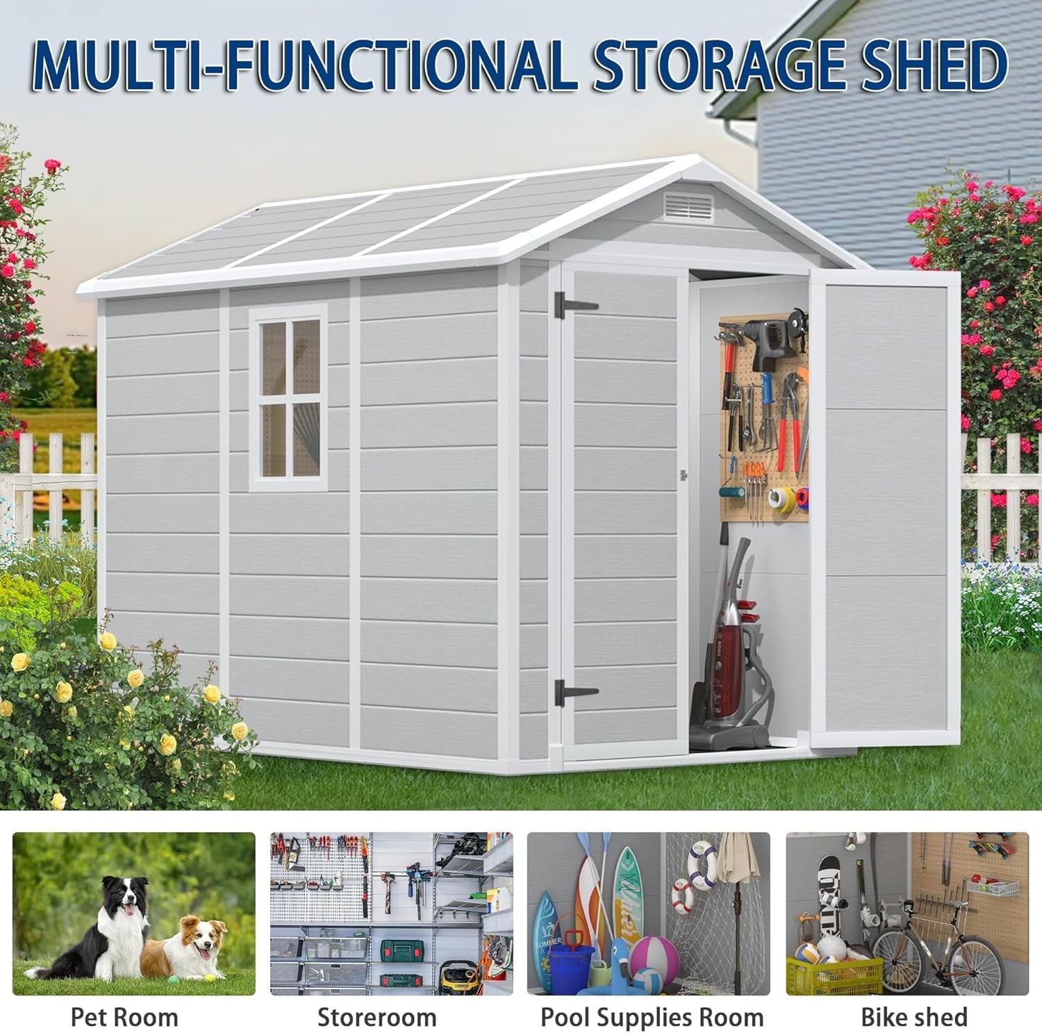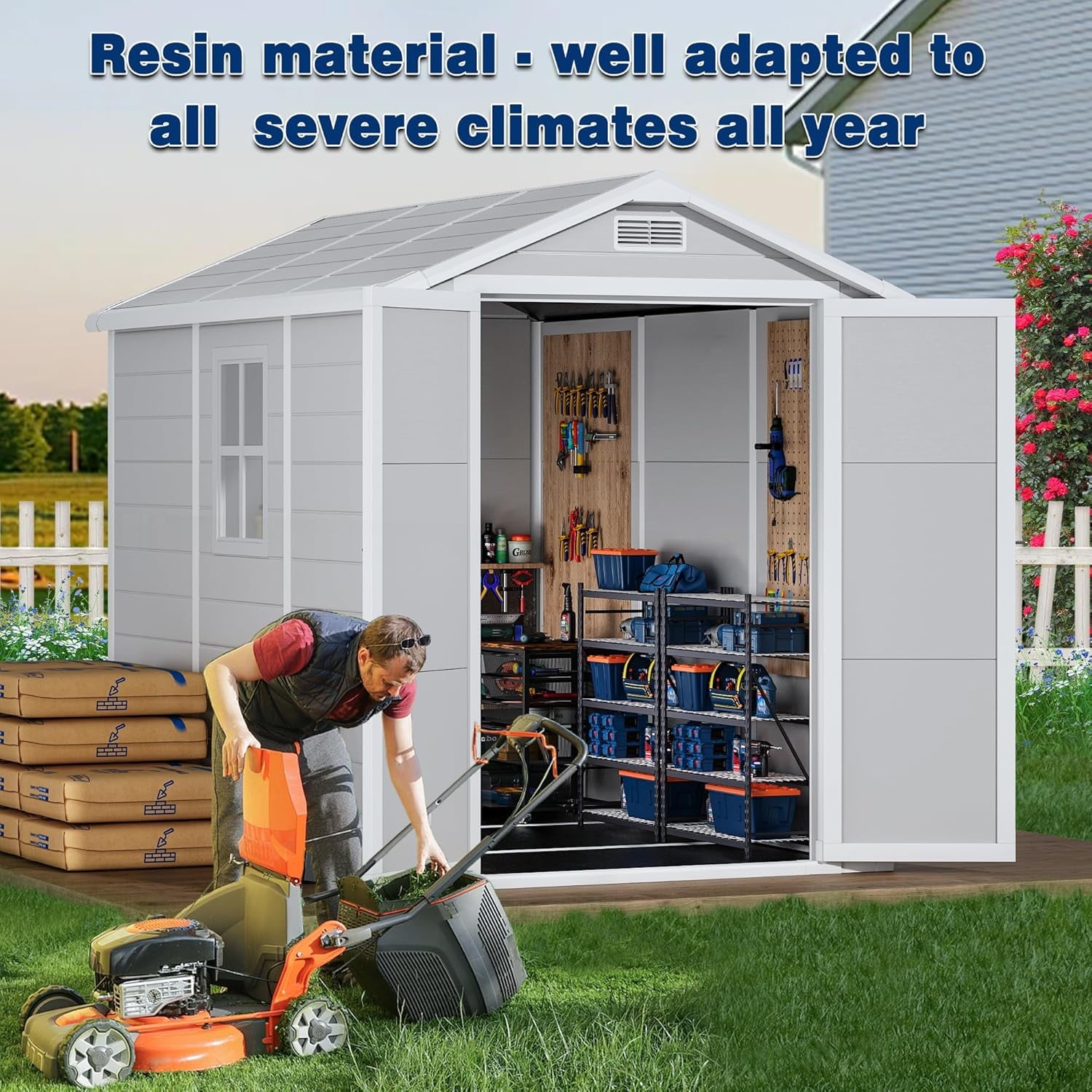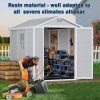- 【 ALL-WEATHER DURABILITY】: Crafted from premium-grade thermoplastic synthetic resin, this backyard storage shed can withstand various elements; Its 12mm thick double-layer resin panels won’t easily deform or crack; The shed’s waterproofing and UV resistance make it suitable for diverse weather conditions; The fade-resistant, friendly materials help achieve low maintenance costs and durable longevity