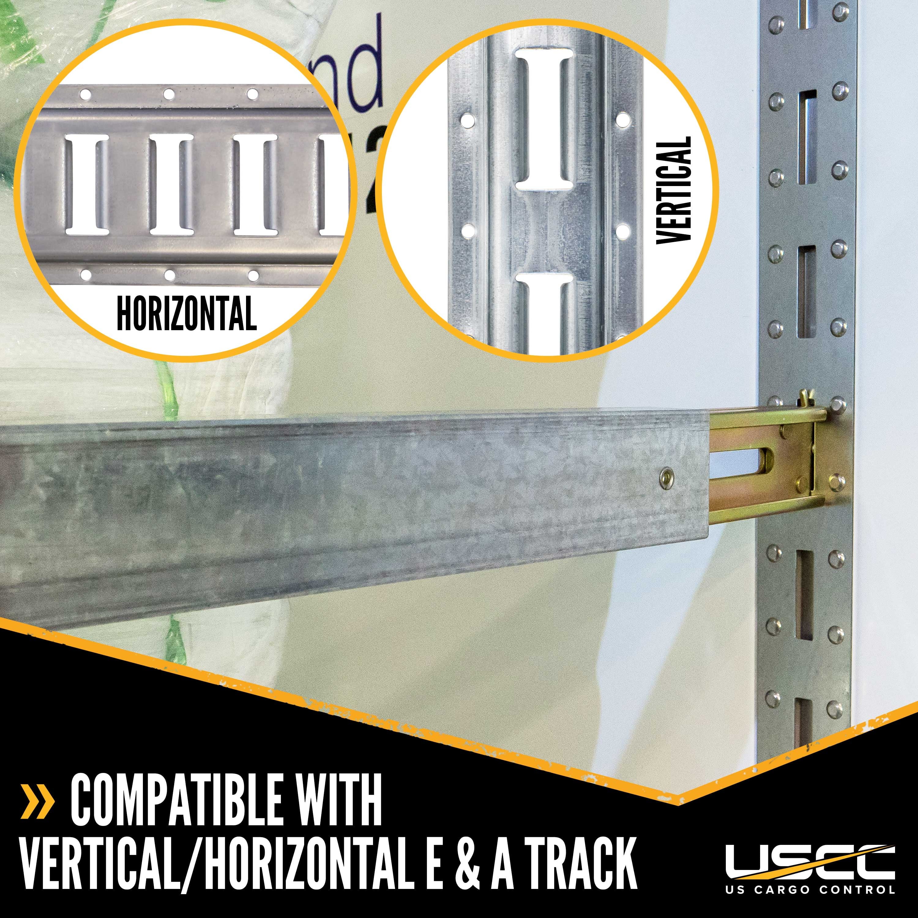 US Cargo Control is your source for equipment for hauling, rigging, moving, towing, and lifting all kinds of cargo. The 92” to 103” E Track Shoring Beams is a tough and durable accessory to have in your E Track accessories for semi-trucks, enclosed trailers and trucks, as it’s made of high-quality, durable steel that’ll provide superior strength for years to come. Also known as truck load lock, cargo bars, cargo poles, trailer cargo bars, and lock bars, you can use steel shoring/decking beams to store large and heavy cargo or valuables (like motorcycles and ATVs) in your trailer or truck. It includes an easy-release latch that has a standard thumb release for positive engagement into E and A Tracks, and you simply click open the latch to release – making unloading easier than ever. With a working load limit of 2,220 pounds on both horizontal and vertical applications, the commercial grade E Track Load Bars will secure your loads and keep from shifting inside your trailer when driving on the highways, speed bumps, rocky hills, and curvy roads. They’re easily adjustable to extend from 92” to 103” (7 ft 6 in – 8 ft 5 in), so you can use this as a cargo stabilizer or divider bar for when you need to create separate platforms and organize items. Do not try to disassemble and cut down to fit a trailer or truck shorter than 92” wide, and it will not fit anything wider than 103”. Whether you’re a professional or you need to get from point A to point B with a trailer or truck, make sure to stock up on some heavy duty Load Bars from US Cargo Control.MAXIMUM SECURITY – Organize your trailer or truck with Etrack load bars that work as divider bars to mount parallel and create sections or deck them as shelves. An adjustable load bar helps prevent items from shifting on speed bumps and curvy roads.,SUPERIOR STRENGTH – US Cargo Control s Cargo E-Track Load Locks are durable and lightweight, thanks to their heavy-duty aluminum finish. The cargo bars unique construction maintains aluminum s lightweight properties while maximizing strength.,EASY-RELEASE LATCH Zinc Plated Steel End Fittings have a thumb release for positive engagement into E and A Tracks, and are designed to easily click and lock into E-Track systems to make the application a breeze. Click open the latch to release.,SUPPORTS 1.1 TONS US Cargo Control s E Track Cargo Bars handle 1.1 Tons, which is a working load limit of pounds. Great alternative to cargo nets and makes a perfect cargo stabilizer to store large and heavy loads without any worries.,SPECS: 1 Aluminum E Track Load Bar , Extends from 92 to 103 (7 ft 6 in 8 ft 5 in) , Finish: Aluminum , Width: 2.5 , Weight: 20 pounds (Single Load Bar) , Vertical/Horizontal Working Load Limits: lbs. , Zinc Plated Steel End Fittings