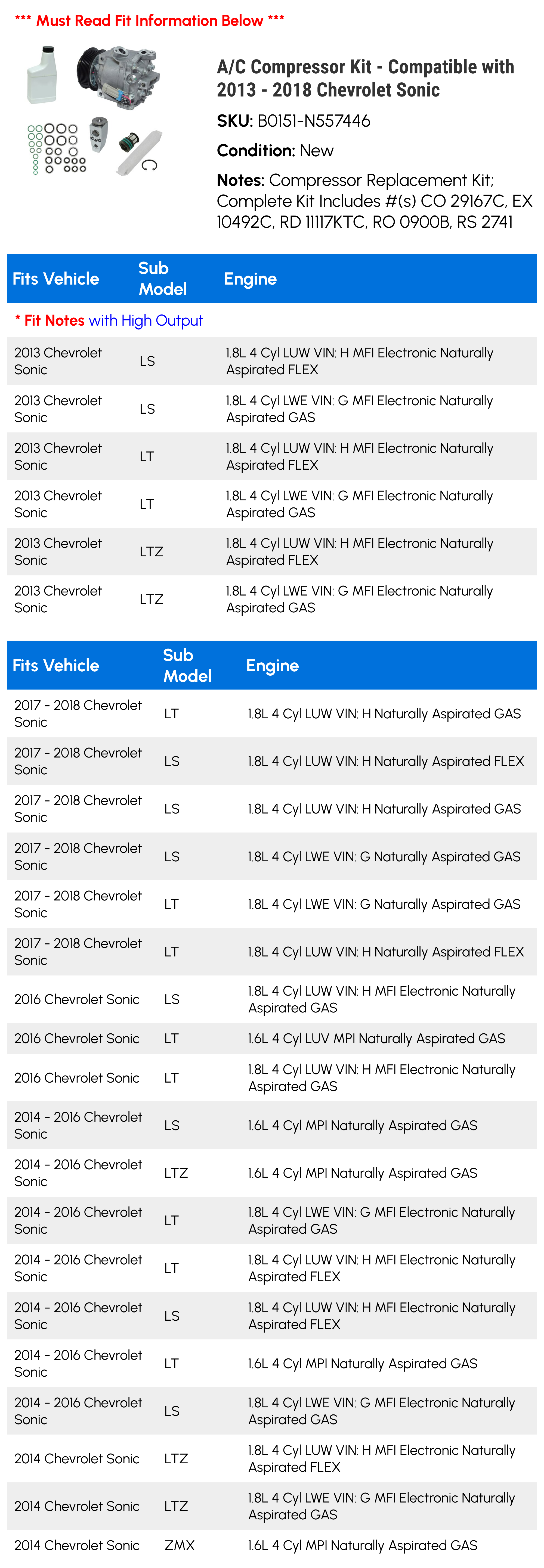 A/C Compressor Kit – Compatible with 2013 – 2018 Chevy Sonic
