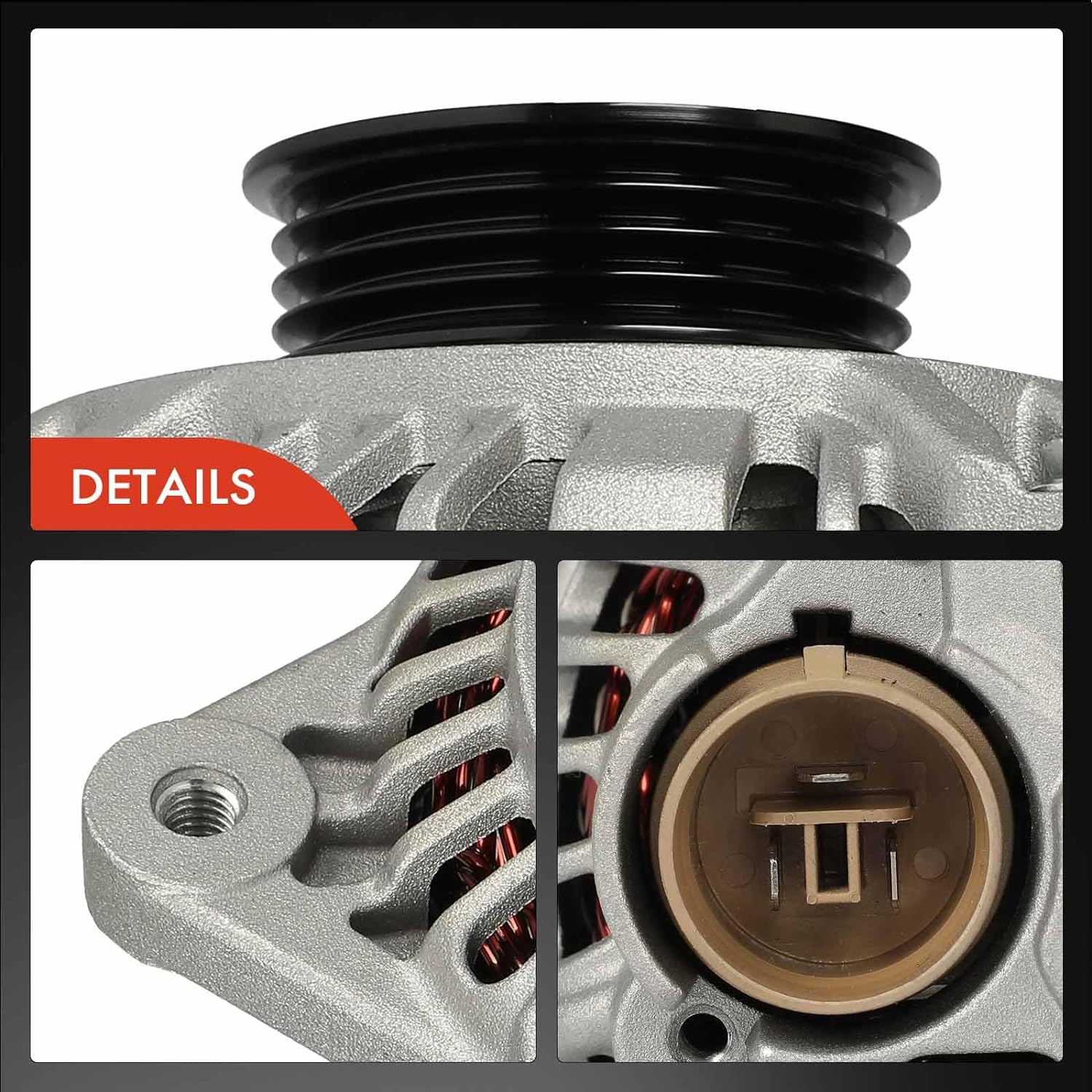 OE Number: 13336N, 13213, 13336, 23719, 30006109, 30016320, 3140050G10, 3140060A11, 3140060A20A-Premium Alternator Compatible with Chevrolet Metro, Tracker & GMC Tracker & Suzuki Sidekick, Swift, X-90 & Pontiac Firefly, Sunrunner & Geo Metro, Tracker, 12V 55A 4-Groove Pulley Clockwise