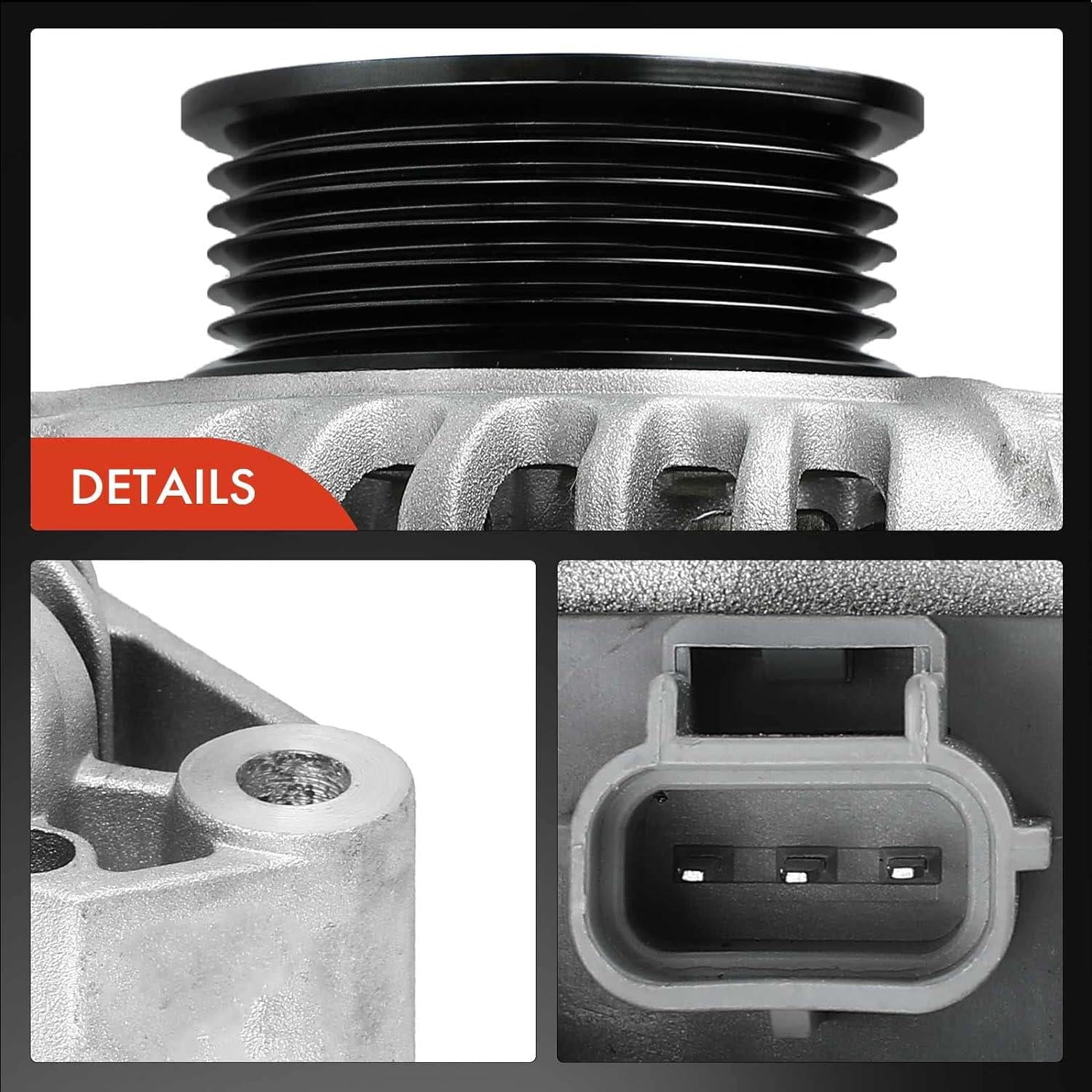 Quantity Sold: One PieceA-Premium Alternator Compatible with Ford Mustang 2001-2004 3.8L, 2004 3.9L, 12V 105A 110A Clockwise 6-Groove Pulley, Replace# 1R3U-10300-AA, 1R3U-10300-AB, 1R3U-10300-AC, 1R3U-10300-AD, 1R3Z-10346-A