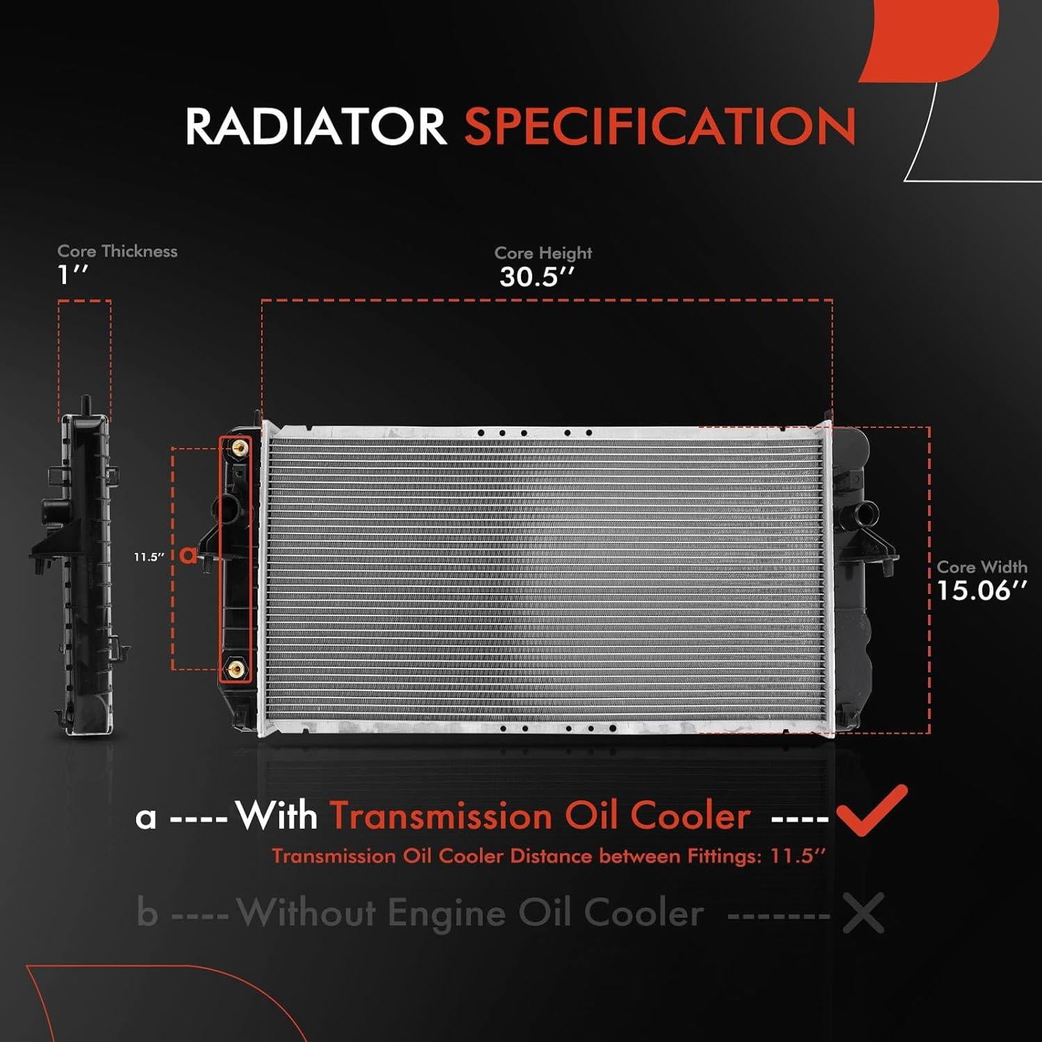Note: Automatic Transmission, It comes with Transmission Oil CoolerA-Premium Engine Coolant Radiator with Transmission Oil Cooler Compatible with Cadillac DeVille 2001-2005 V8 4.6L & Oldsmobile Aurora 2001-2003 V8 4.0L, Automatic Trans. Replace# 52381076, 52480470