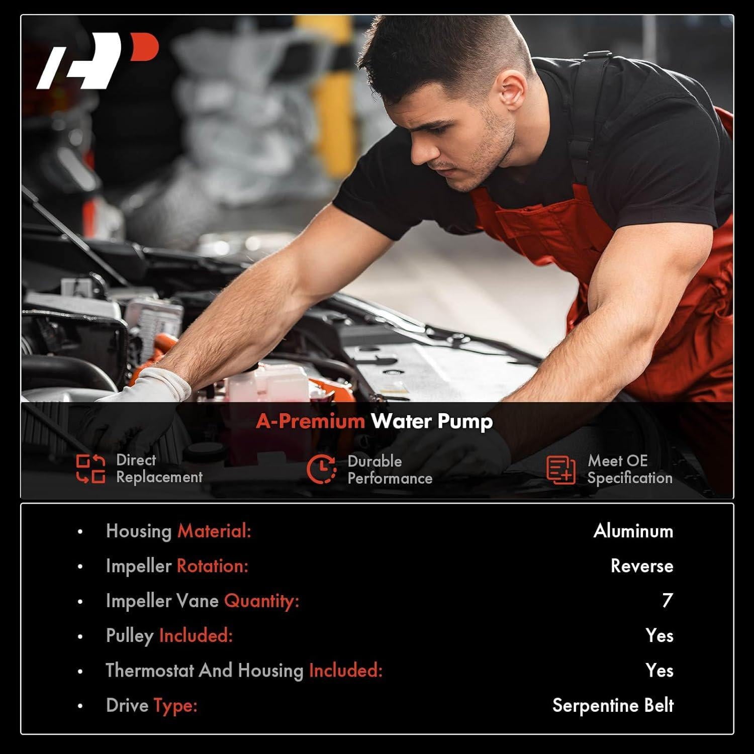 A-premium Water Pumps are an ideal choice to replace your broken Water Pumps. All Water Pumps meet or exceed OEM specifications. Due to high manufacturing standard, it will come with one year quality guarantee.