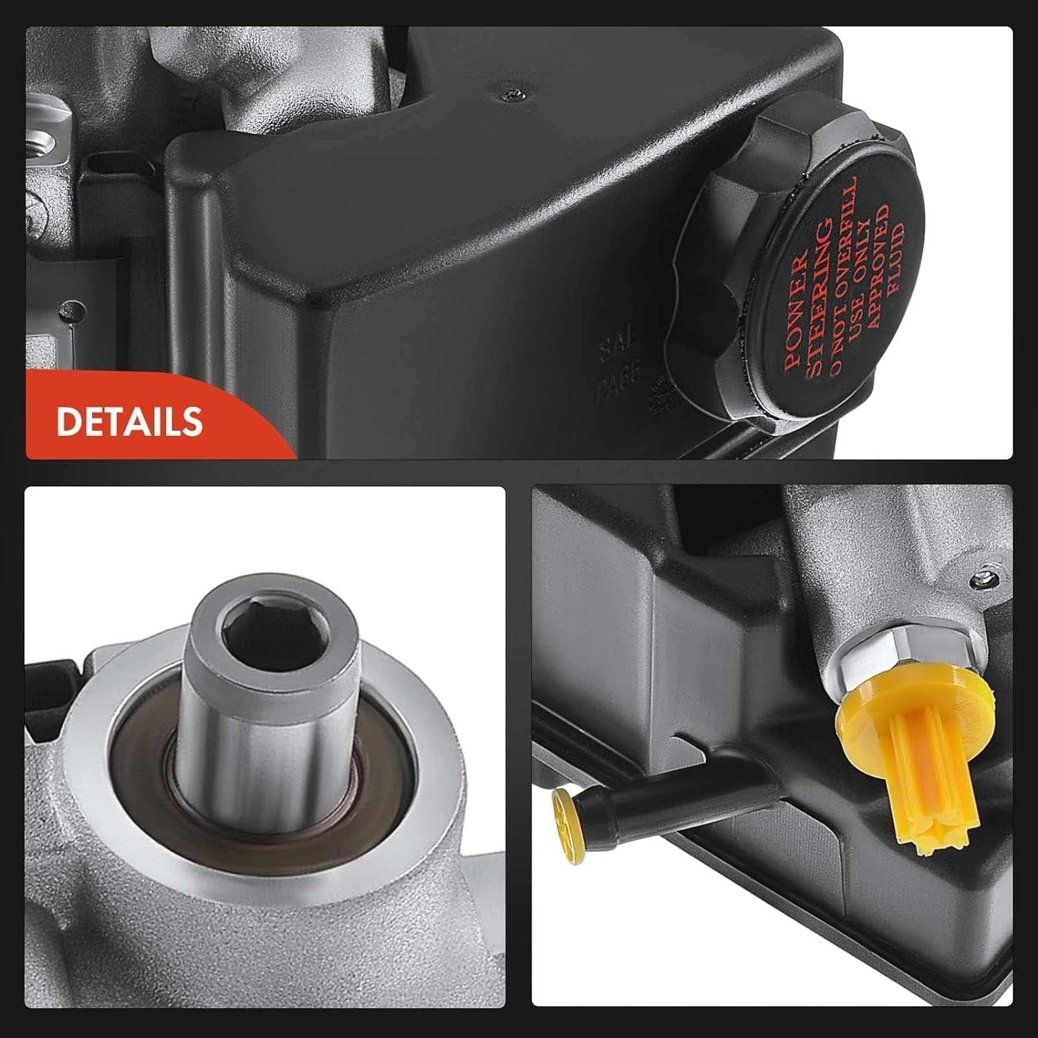 Quantity Sold: One PiecePerfect Fitment Compatible with Chevrolet Impala V6 3.4L, Lumina V6 3.1L, Monte Carlo V6 3.1L, Monte Carlo V6 3.4L Compatible with Buick Regal 1996 V6 3.1L, Century V6 3.1L Compatible with Oldsmobile Cutlass Supreme V6 3.1L Compatible with Pontiac Grand Prix V6 3.1L, Description Pulley Included: No Reservoir Included: Yes Material: Cast Iron Outlet Thread Size: M16 x 1. Hose Port Type: O-Ring Part Number: 2057888F, 26040467, 26043369, 26046847, 26048008, 26086099, 88985332, 2057888, Perfect Solution This power steering pump is best professional solution for the wheel steering problem (such as squealing noise, heavy steering, jerky steering, fluid leaking, etc), and restore power steering function, also saves you hundreds of dollars from OE part., Rigorous Testing All important parts (campacs, spool valves, etc.) are double-tested to ensure product reliability, and built with new O-rings and seals to prevent oil leaks., Buy with Confidence 1 Year Unlimited-mileage Quality —We extremely value your satisfaction and strive to provide you good shopping experience. Any further question, please to us at any time.
