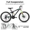 Home Bicycles A2460 24 Inch Mountain Bike with Full Suspension, 21 Speed Grip Shifters, High Carbon Steel Frame, Mechanical Disc Brakes, Unisex for Men/Women/ Adults, Ideal for Trails.