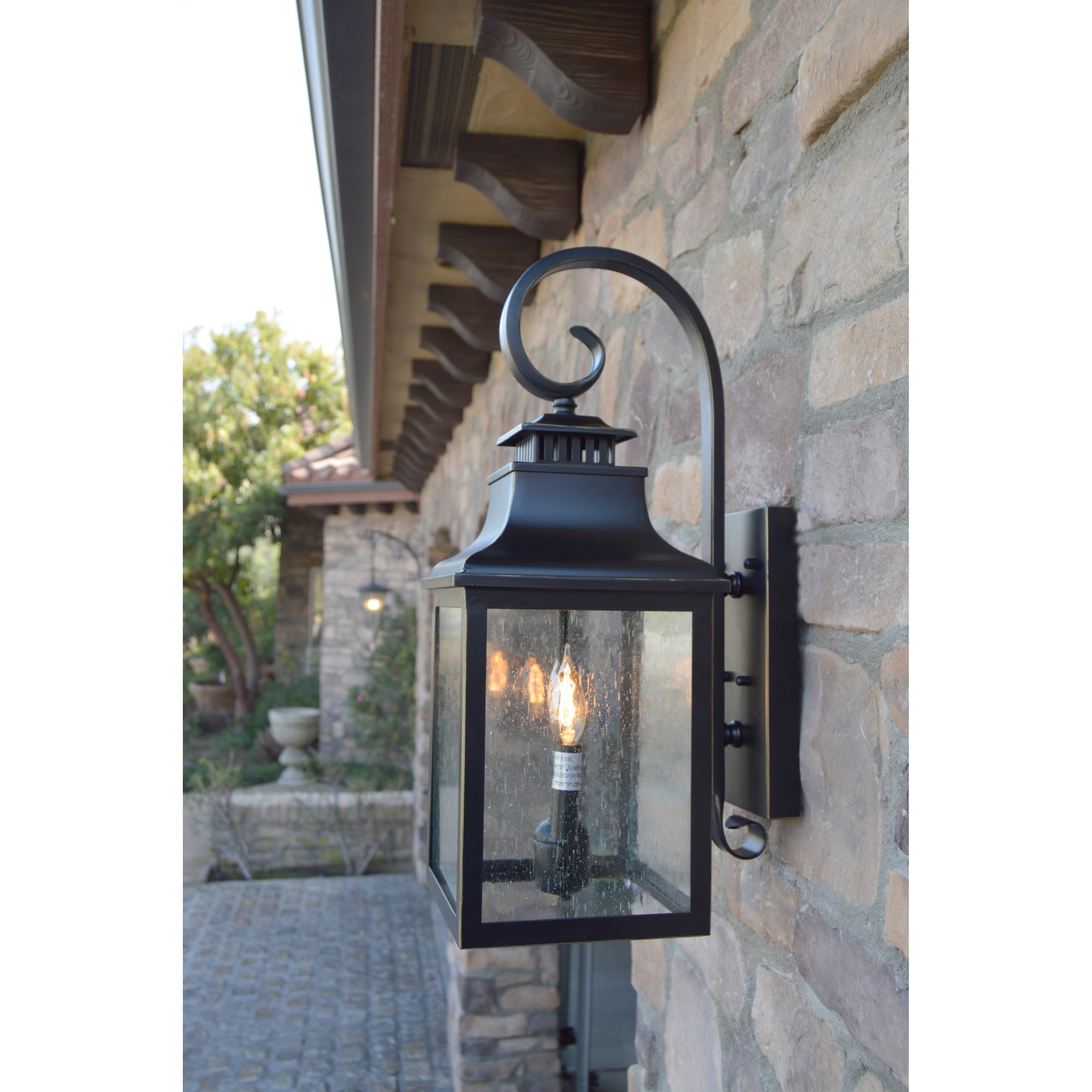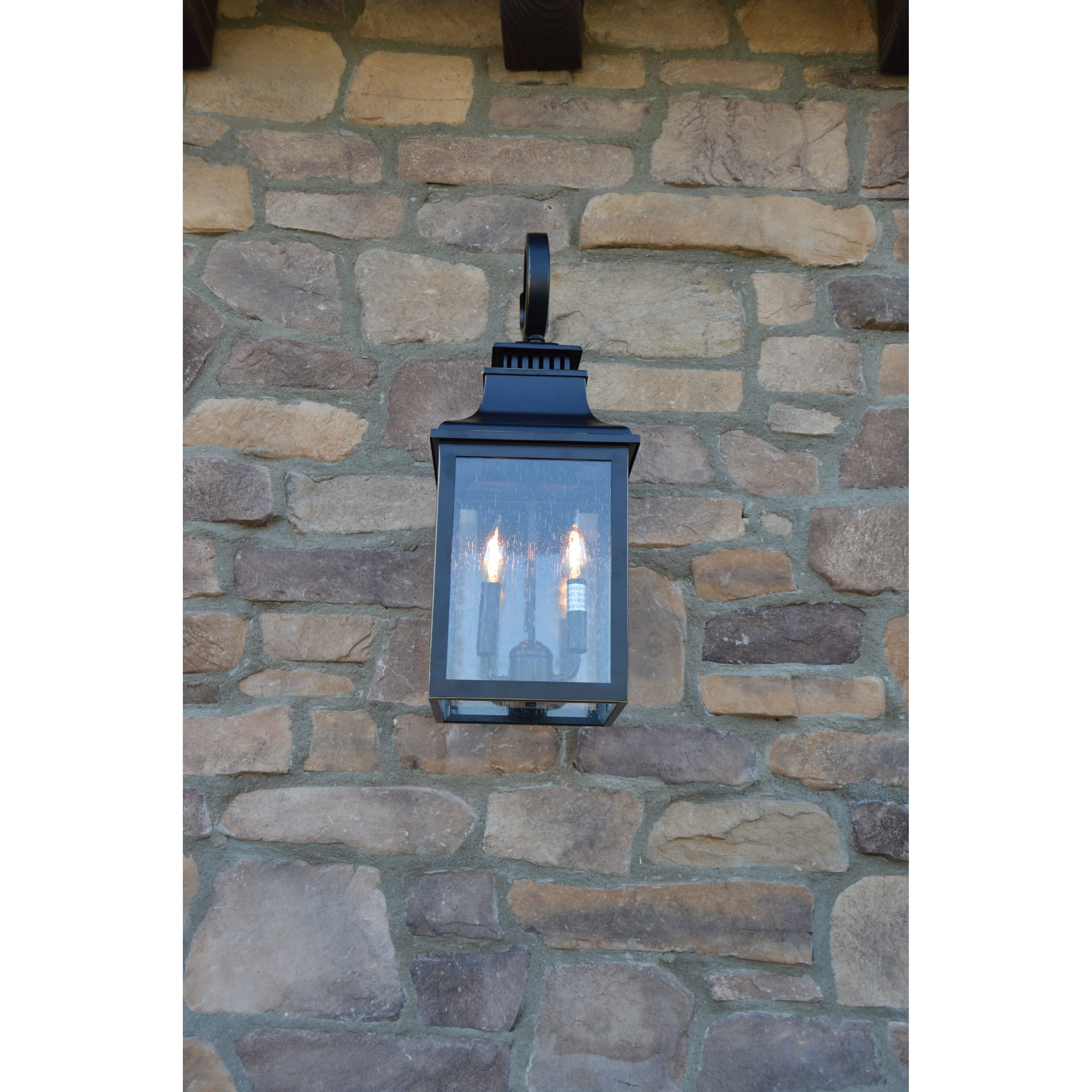 This elegant, durable exterior light fixture is sure to improve the look of your home or business. The simple lines of its construction allow it to work well with almost any style. Its imperial black finish and clear seedy glass give it a beautiful, antique appearance. Give your porch, patio, or garden the finishing touch it needs with this gorgeous light fixture.