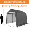 - 【2 Removable Roll-up Zipper Doors】The doors with double zippers and buckles can be removable or rolled up. Doors at the front and back of the storage shelter for easy entry and exit, better visibility and facilitate air circulation.