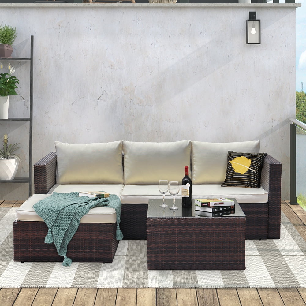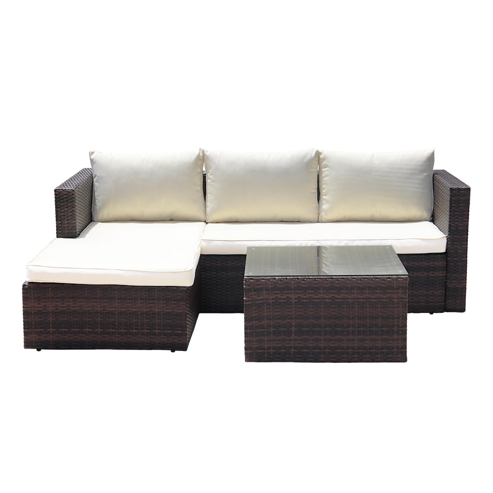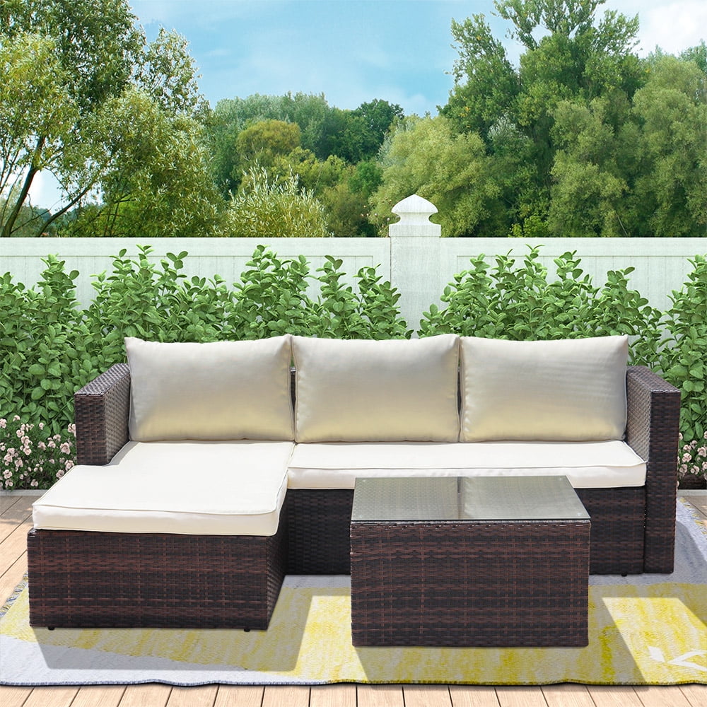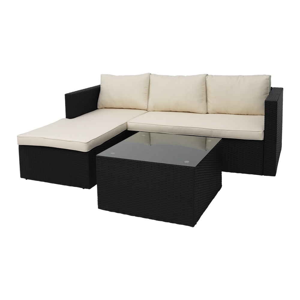 This movable design allows you to adjust the chaise seaters in left or right side to fit your place. All-weather resistant wicker modern design, widely used for outdoor patio, porch, backyard, balcony, poolside, garden and other suitable space in your home. This sectional seating group includes one 3-seaters sofa with chaise and a tempered glass top coffee table that will add a little bit of style and class to any outdoor setting, Brighten your backyard with a stylish outdoor furniture set and make the outside of your home just as inviting as the inside.