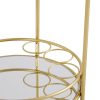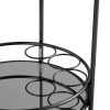 • 【Multifunction and Durable】The black serving cart is made of high-quality metal and mirror. Double row cup holders can hold multiple goblets,three fixed round shelves hold 3bottles of wine.  Its high quality Increases the durability of the stroller and the large capacity meets your daily needs.