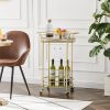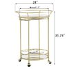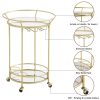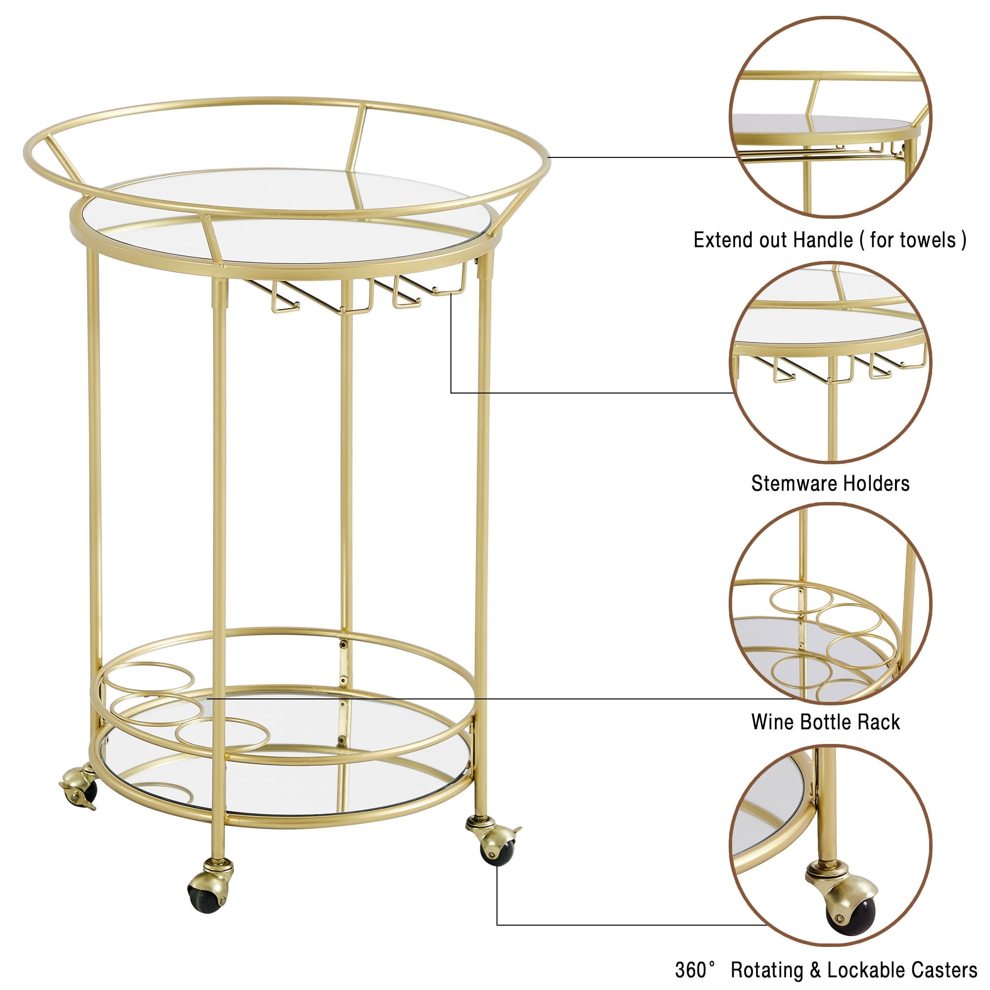 • 【Modern Design】: The golden dining cart features a round metal frame with bright colors and beautiful glass surface for originality.   The mirror design with gorgeous texture and waterproof andeasy to clean.   The cute little bar cart looks really great and fits any indoors and outdoors style.