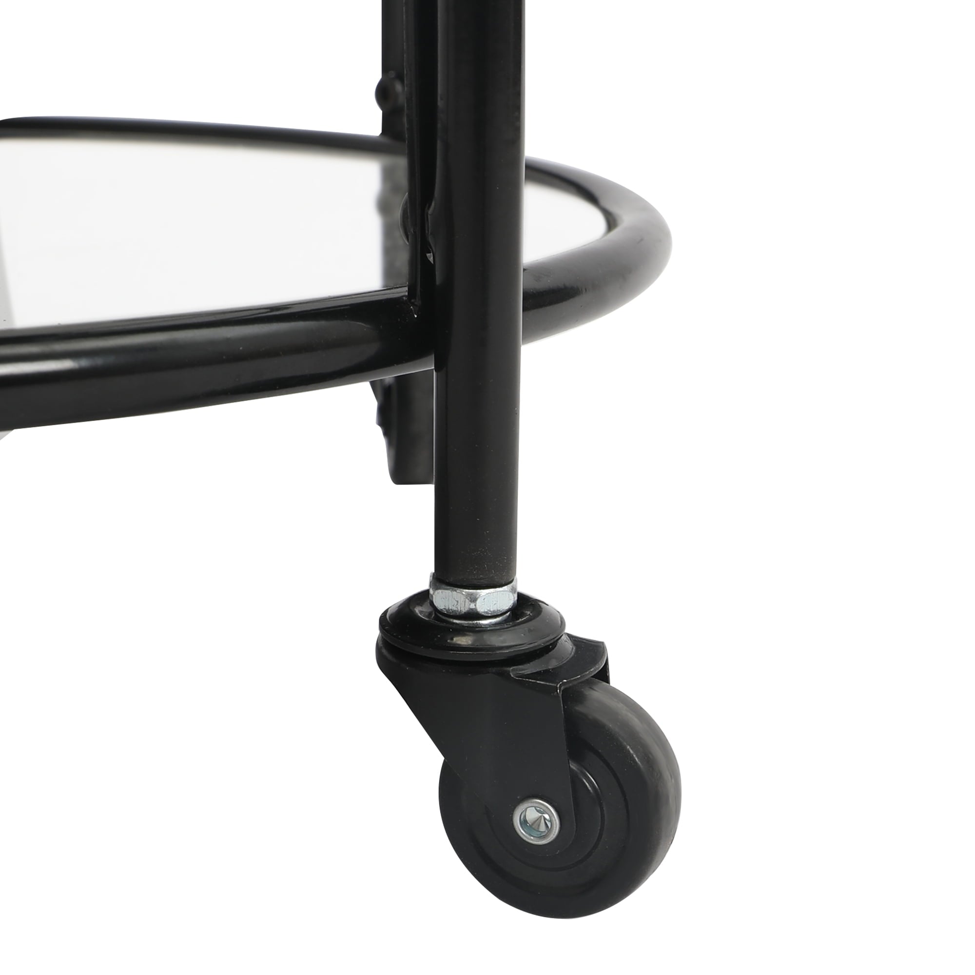ABBSR Round Black Rolling Bar Cart with Universal Wheels,Mobile Wine Serving Cart for Shortages Living Room Kitchen