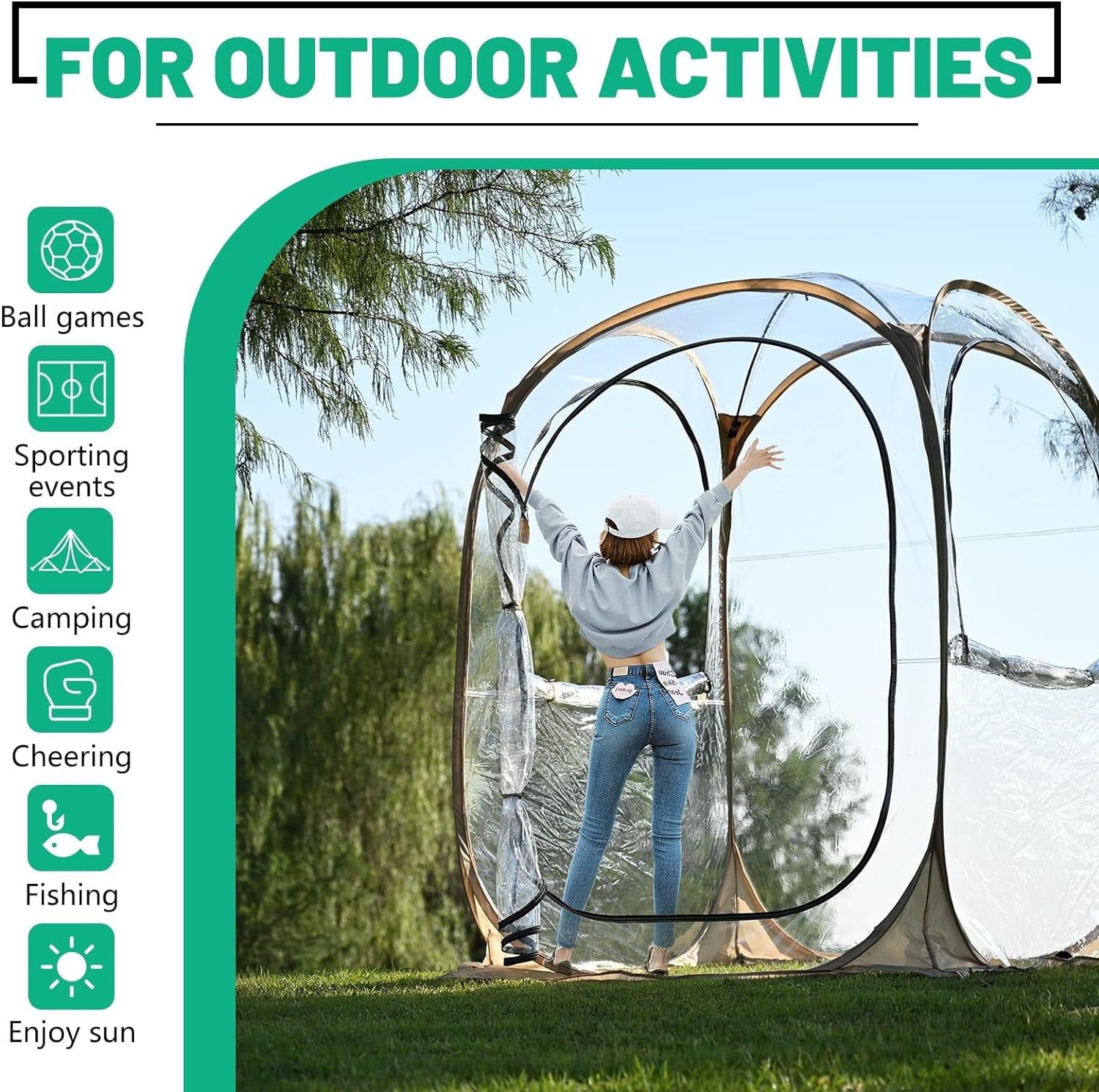 • 【Unparalleled 540-Degree View】Experience the ultimate viewing experience with our pop-up clear tent, designed with ultra-clear thick PVC for a full 540-degree panoramic view. Perfect for fans who don’t want to miss a single moment of the action, whether it’s sports events, wildlife, or scenic landscapes.