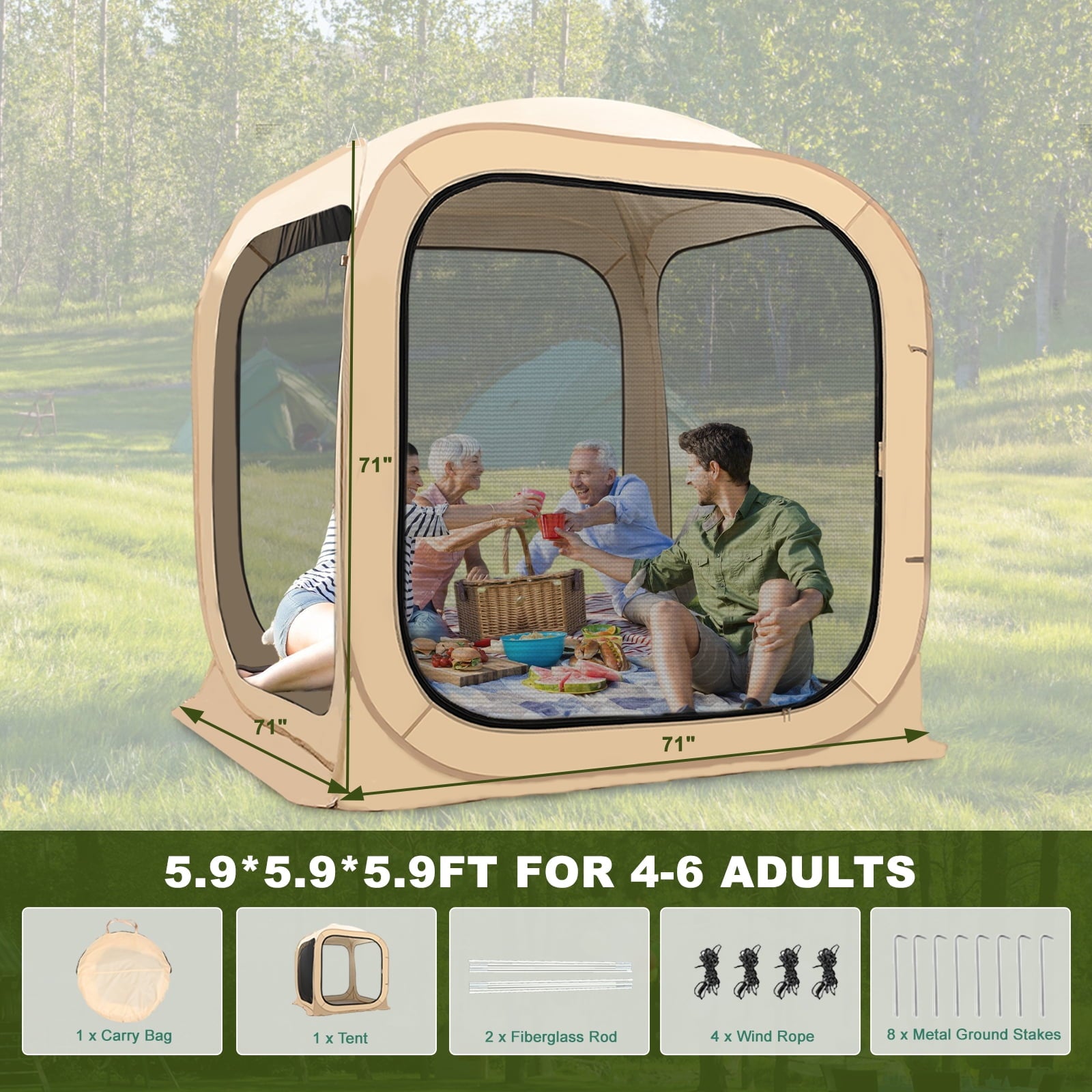 • 【Spacious Accommodation】Our weather 3 person pod tent measures 51″L x 51″W x 71″H, comfortably fitting 1-3 people, making it ideal for families or groups. Enjoy the game or the great outdoors together with ample room for everyone.