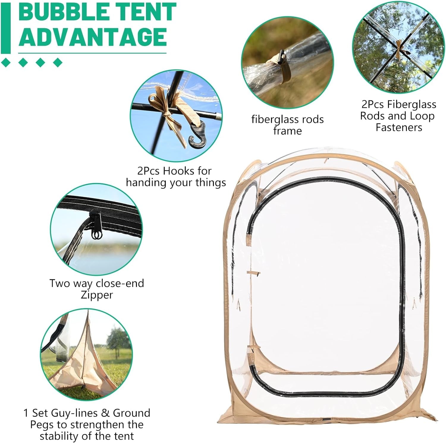• 【Effortless Setup in Seconds】Forget the hassle of complicated assembly! Our bubble tent features an advanced pop-up mechanism that allows for instant setup and easy takedown, letting you focus more on enjoying your outdoor activities.