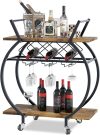 Easy to serve for you guests with 4 four 4 360° swivel casters. Designed with Round steel frame and wine rack & glasses rack ,bringing convenient for your party time.