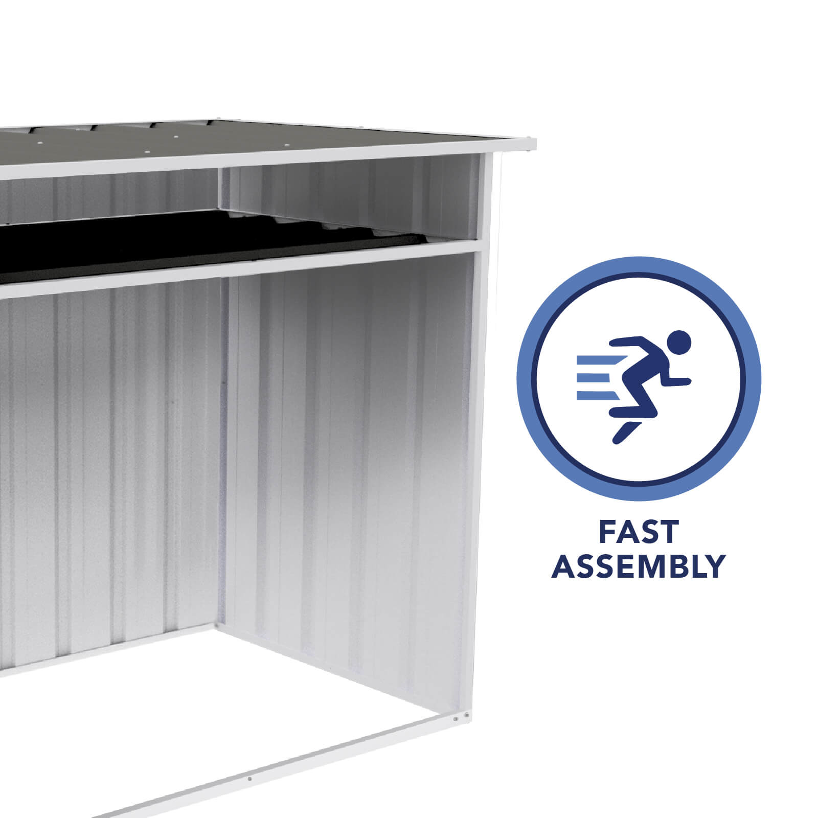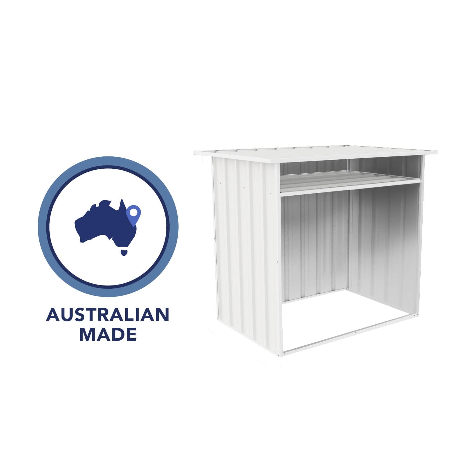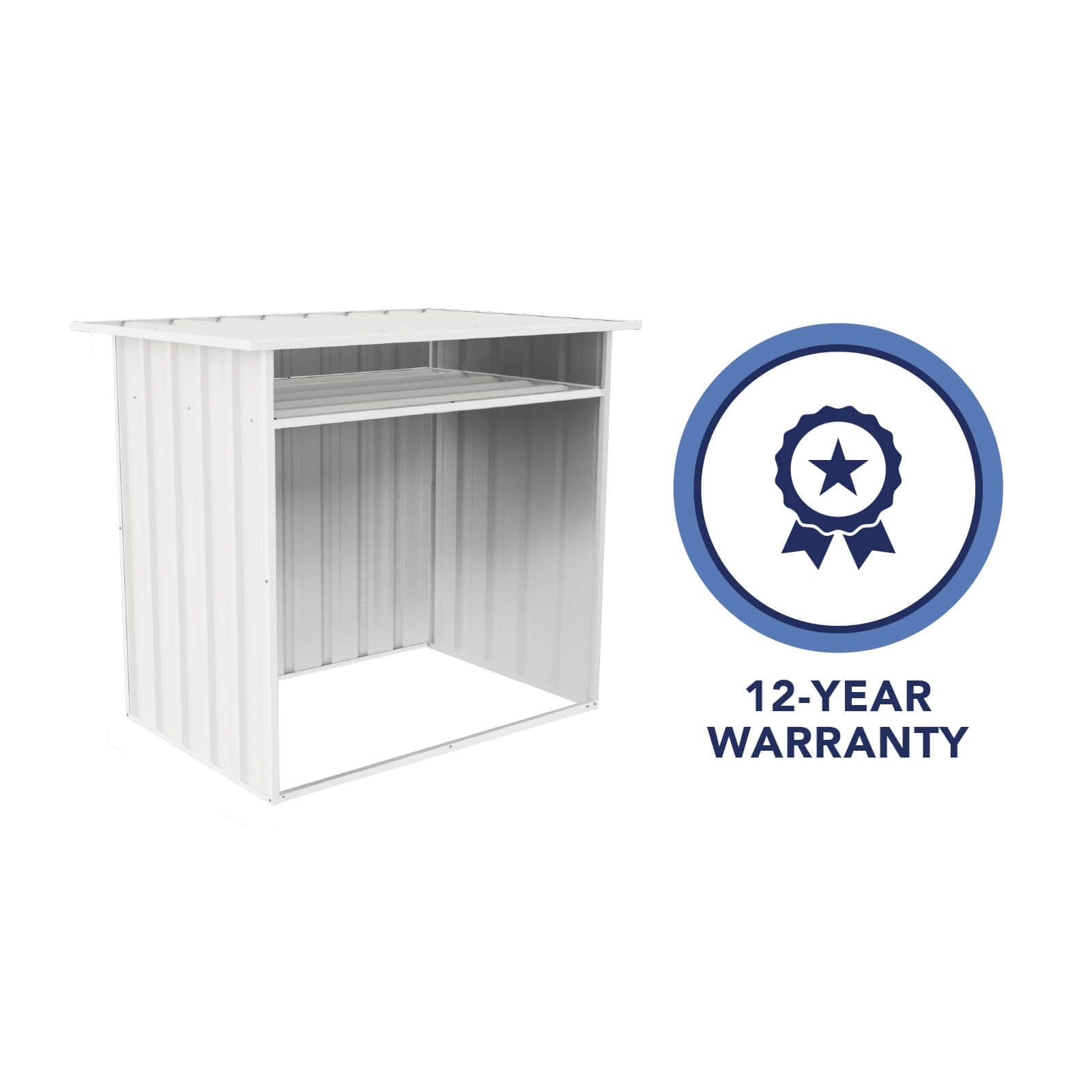 The 4 x 3 ft Absco Wood Store is a compact outdoor structure designed for the storage of firewood, with an inbuilt shelf perfect for smaller pieces timber or kindling. Absco’s wood store comes with the patented SNAPTiTE assembly system that saves time in assembly with less screws required. SNAPTiTE also provides structure and rigidity to your structure without the need for additional internal bracing, when anchored correctly to a concrete slab. Flooring is not included.