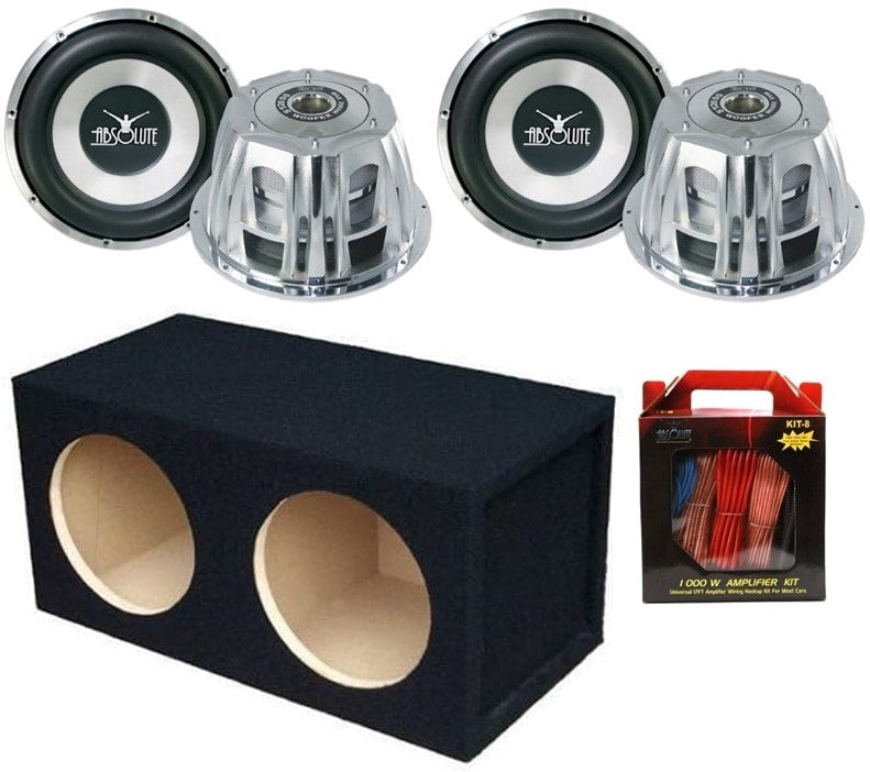 Absolute Strike Series ST-1500 2000-Watt 10-Inch Dual 4-Ohm Car Subwoofer + Absolute DSS10 Double Sealed Enclosure Box + Absolute KIT8 8 Gauge Amp Kit