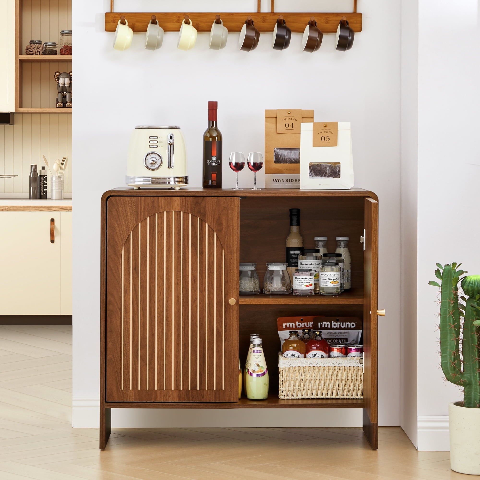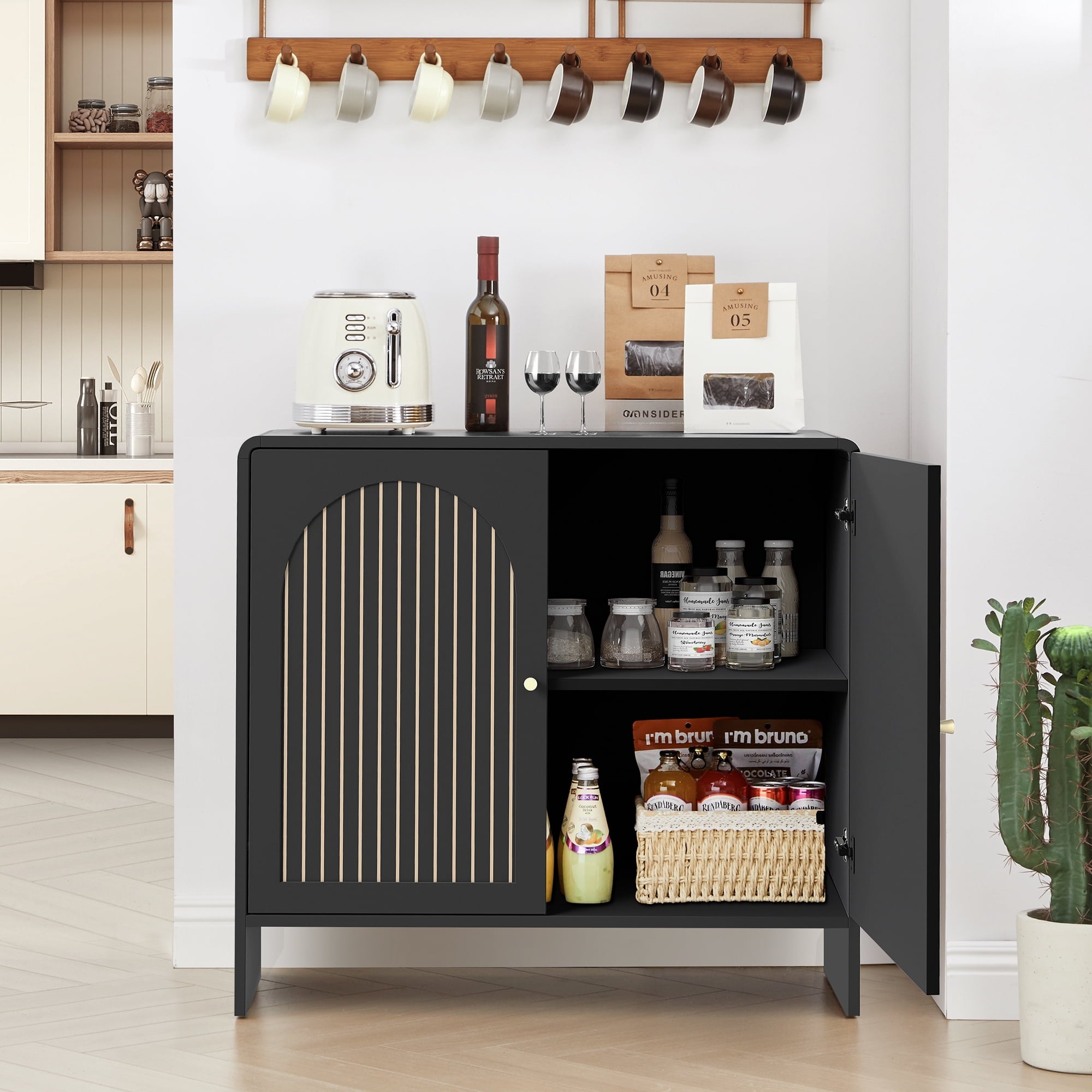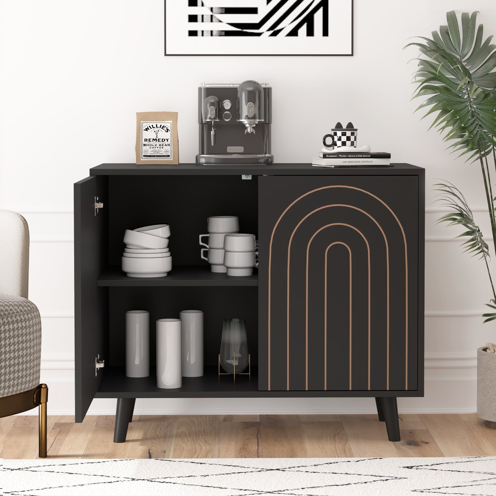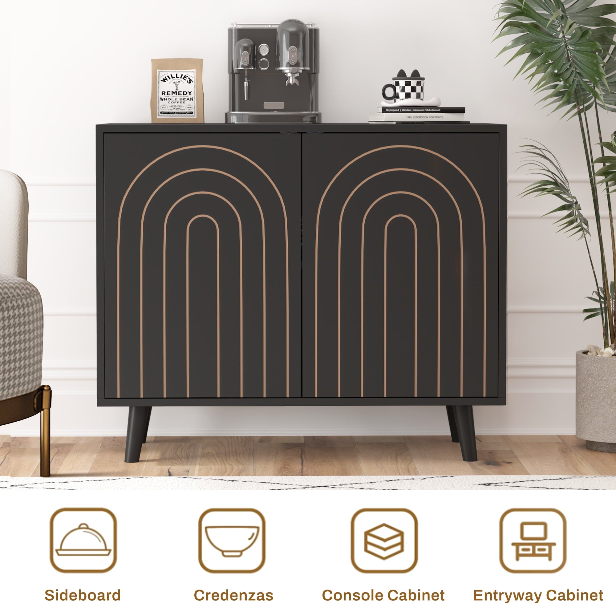 Multi-Purpose Use: Whether you need an entryway table, coffee bar, or credenza, the Giratree accent cabinet serves various functions, providing practical storage solutions while elevating your home decor