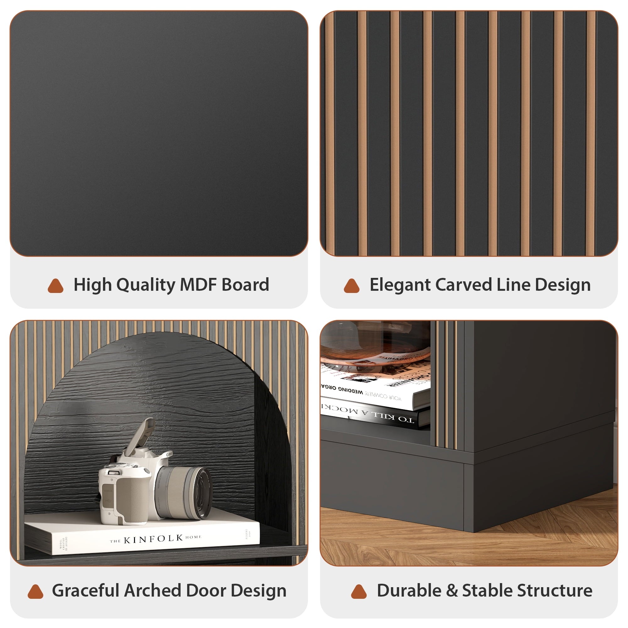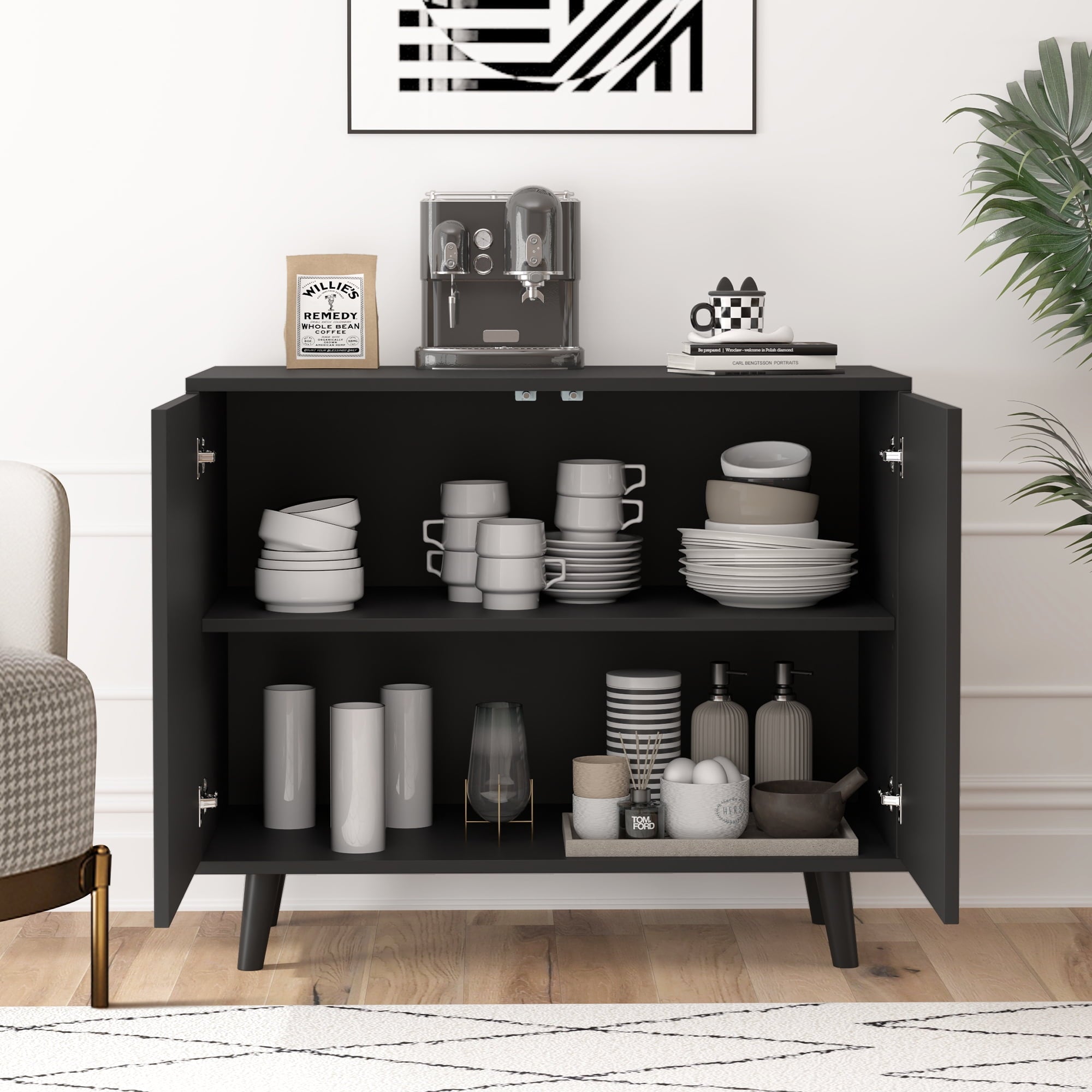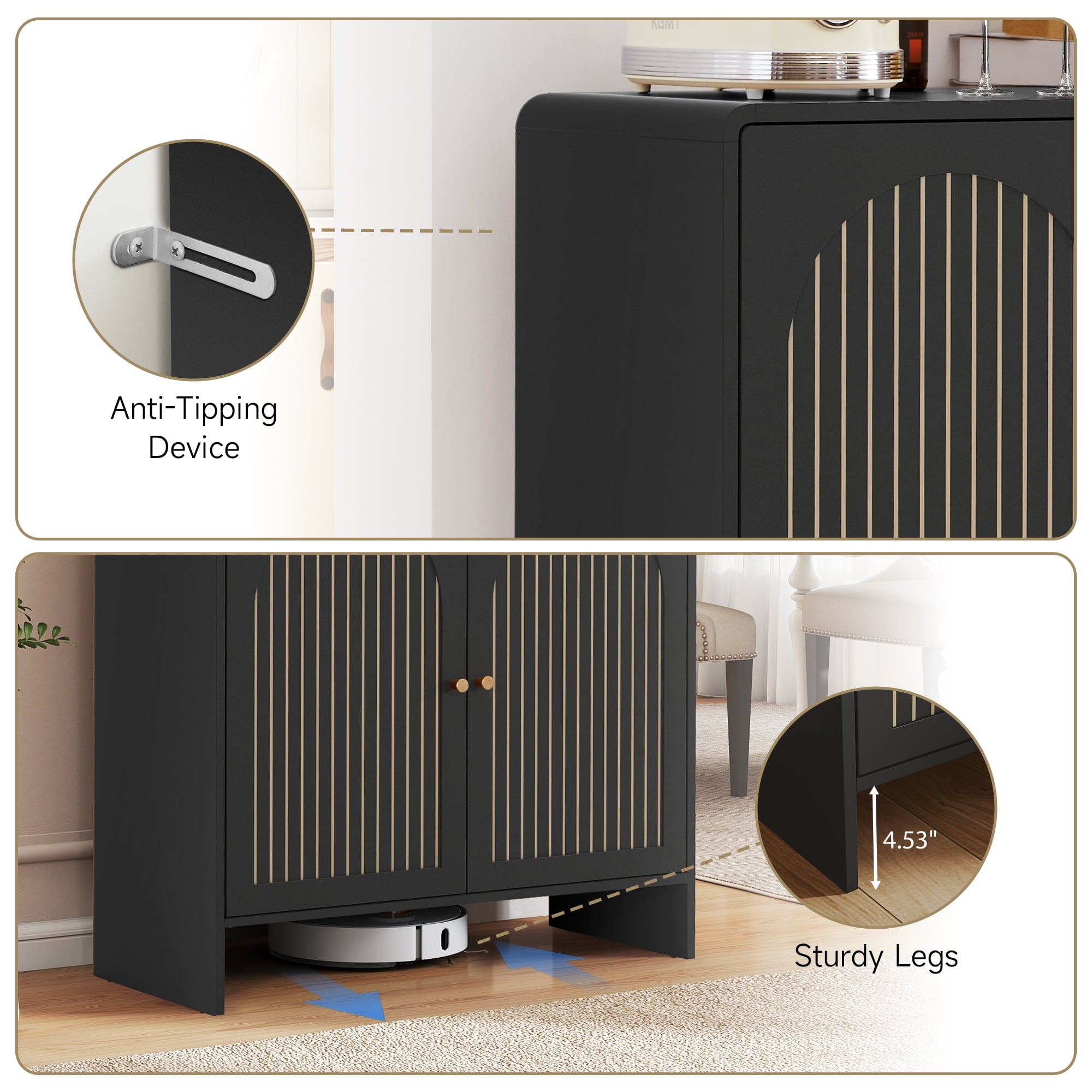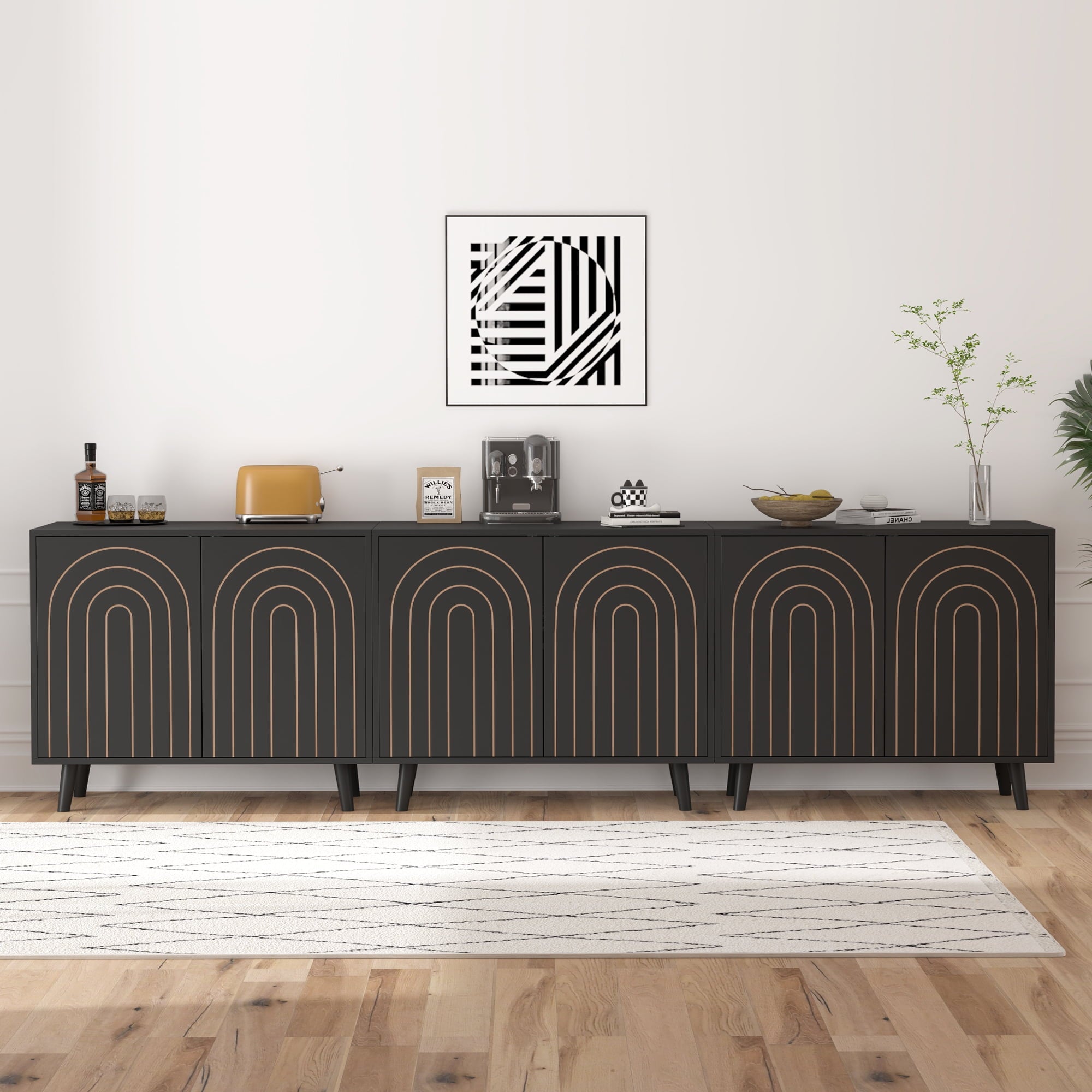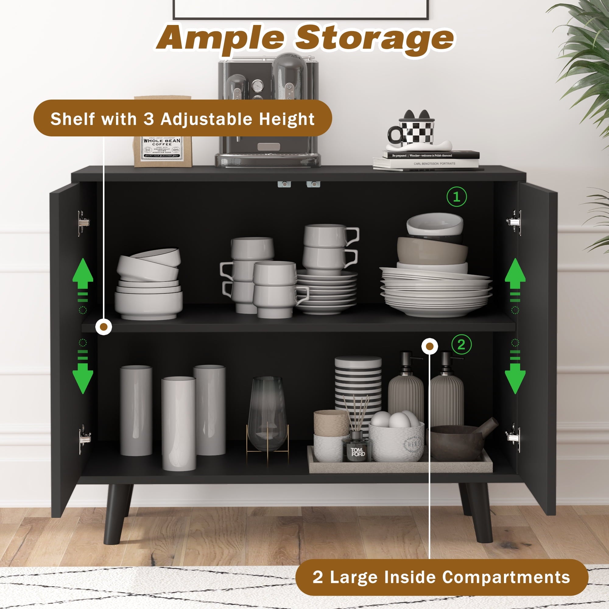 Versatile Functionality: This modern buffet sideboard features adjustable shelves, allowing you to customize the interior layout for storing books, displaying decorative items, or organizing everyday essentials effortlessly