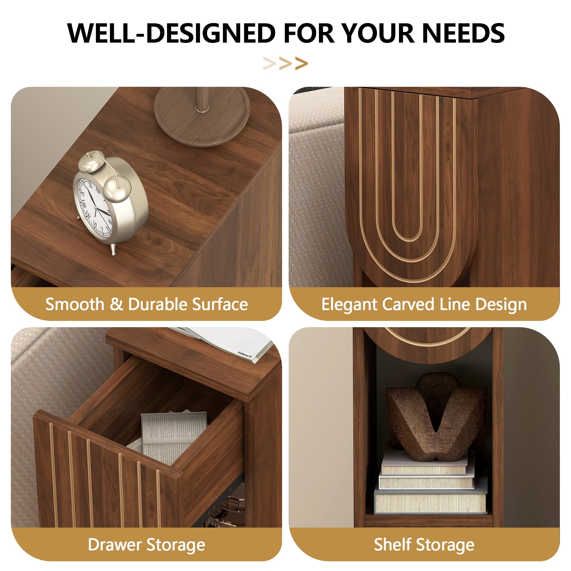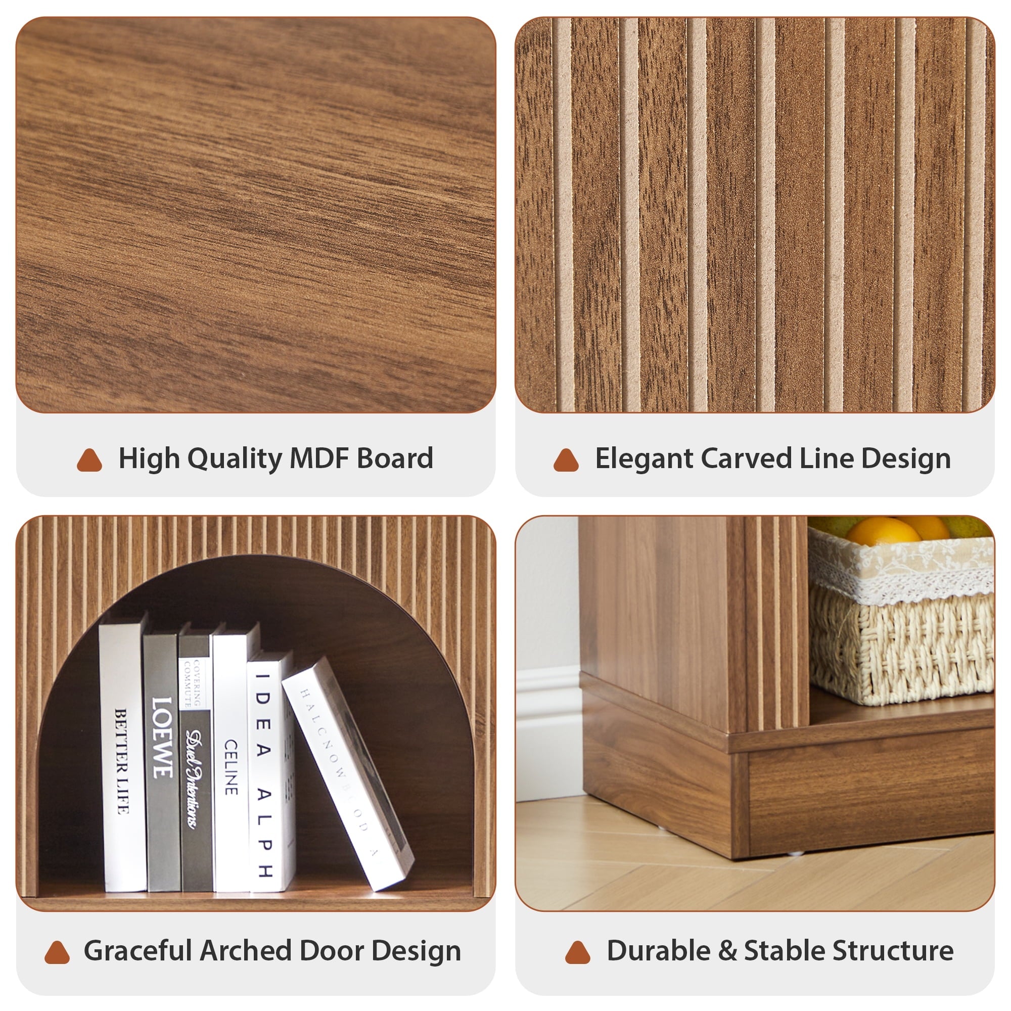 High-Quality Craftsmanship: The Walnut Giratree Accent Cabinet with Carving Lines adds a sophisticated touch to any room, ensuring this console cabinet stands out in any setting. Making it a perfect decorative storage cabinet for your bedroom, living