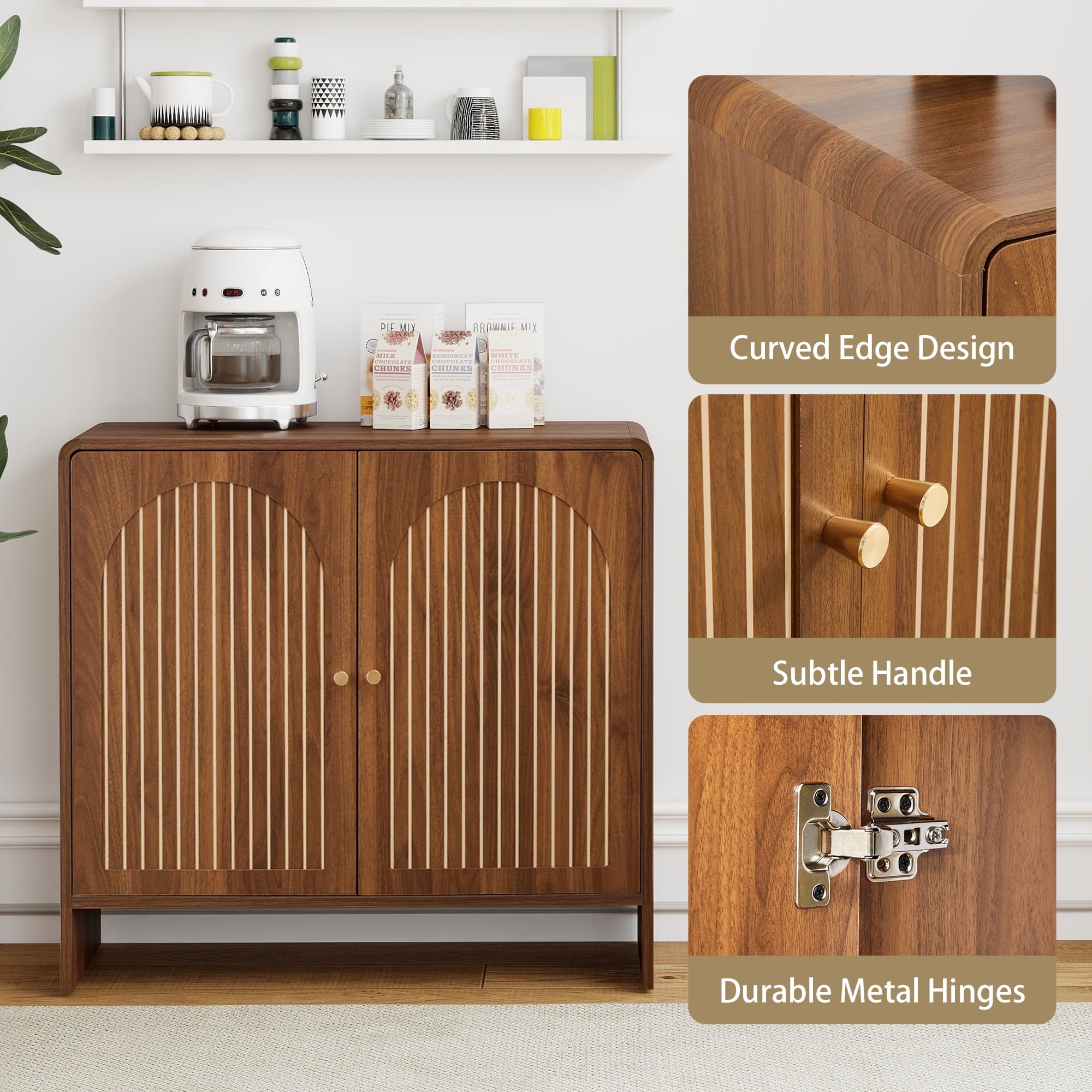 - Accent Cabinet with Carving Lines, Modern Buffet Sideboard with Adjustable Shelves, Decorative Storage Cabinets for Bedroom Living Room Kitchen Office Entryway and Hallway, Walnut