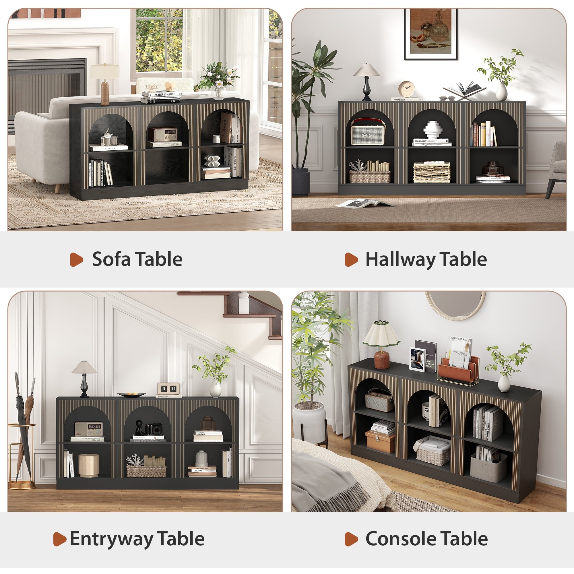 console table seamlessly complements existing furniture and decor, creating a clean and sophisticated look in any room