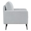 - Our modern armchair blends contemporary design with comfort, which is functional and stylish. Armrests on both sides of the sitting chair make an ultimate in comfort. The use of chenille fabric adds a touch of warmth, while the sturdy metal legs contribute to its durability and a chic look. This accent chair is a perfect combination of stylish and coziness, making it an ideal choice for your modern home decor.