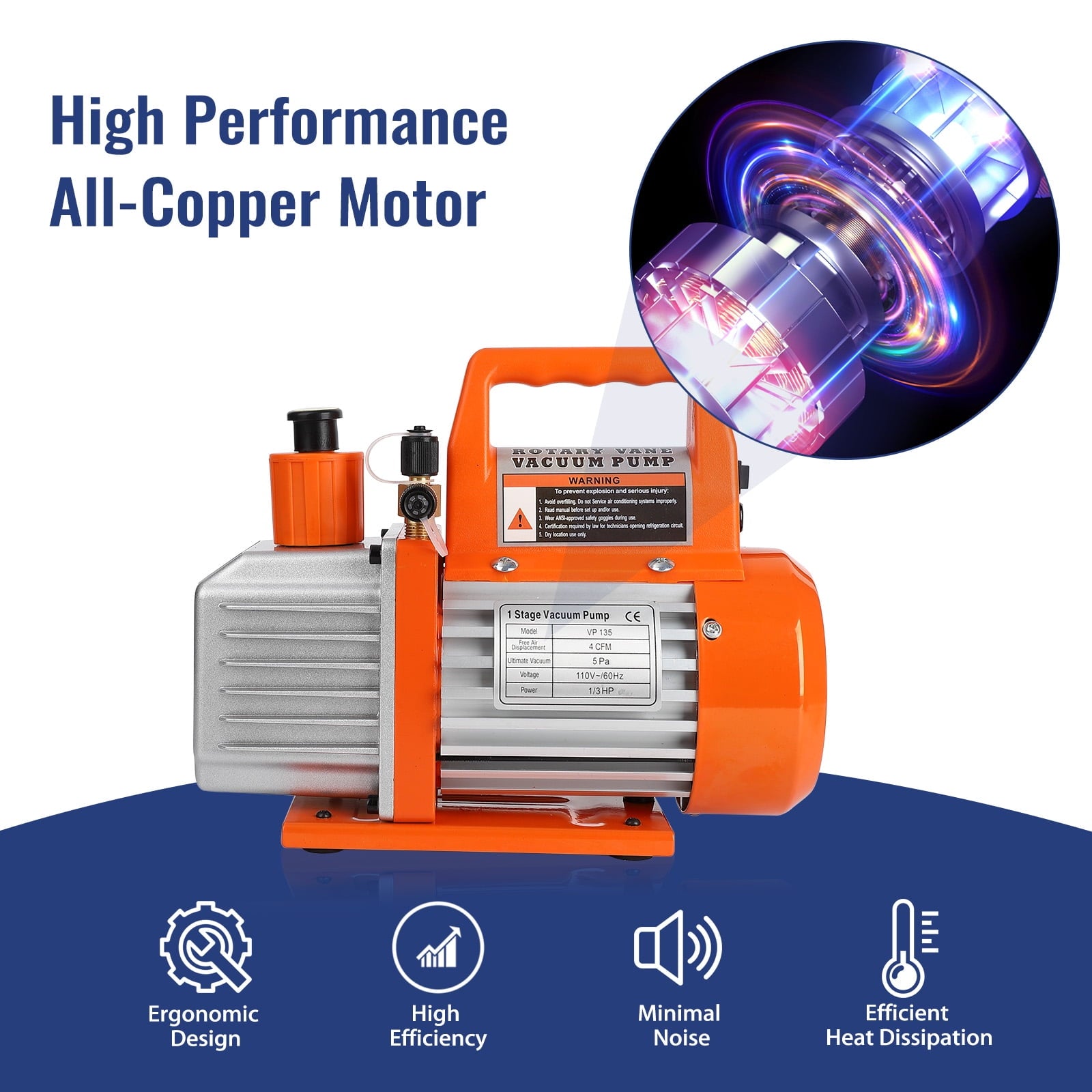 - –[Quiet Operation]: Operate in peace with our vacuum pump’s solid construction that ensures smooth and quiet operation. Perfect for residential or commercial use, it removes moisture and air from systems without the noise disruption.