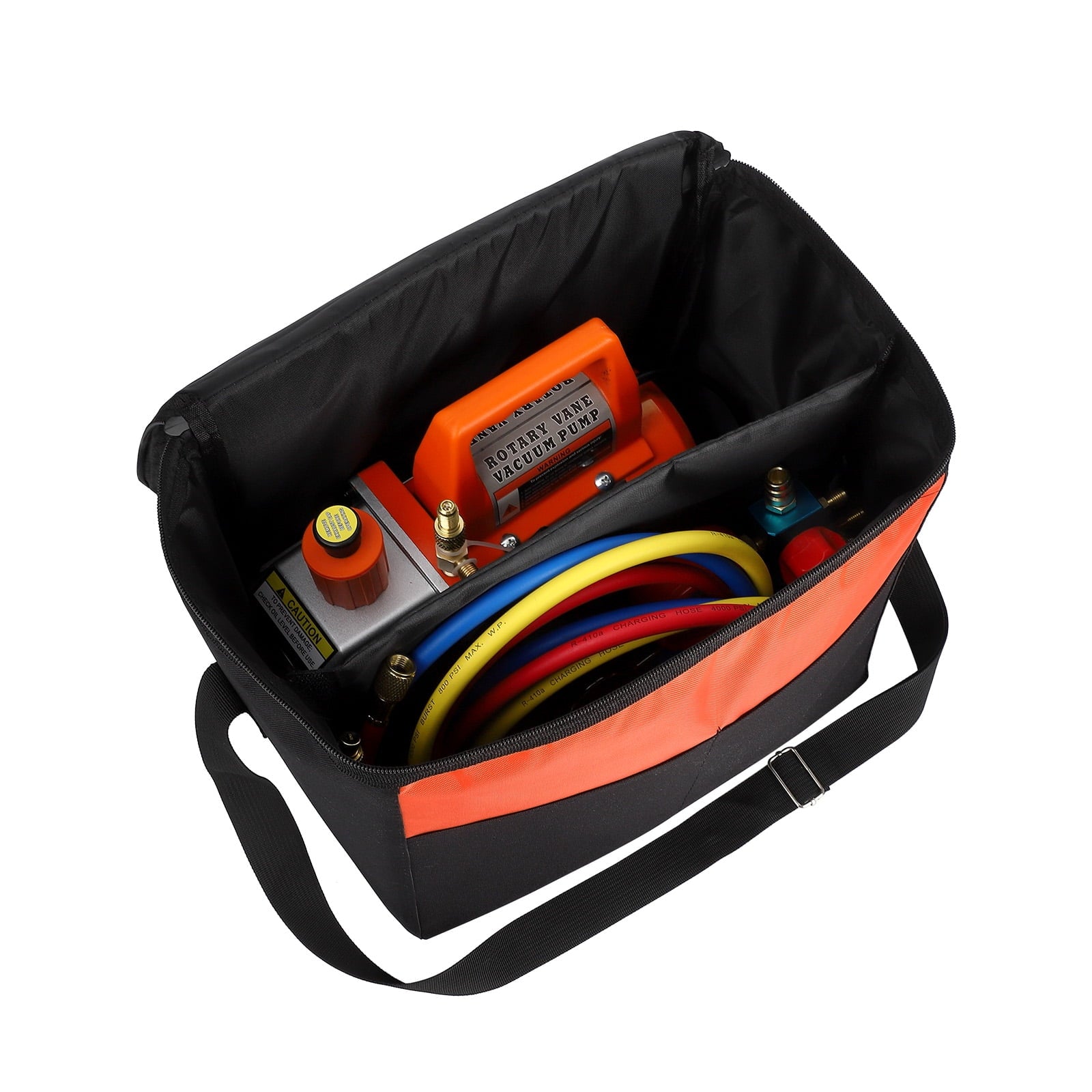 Our AC vacuum pump features an ergonomic grip design and comes with a large capacity tool bag for excellent portability.