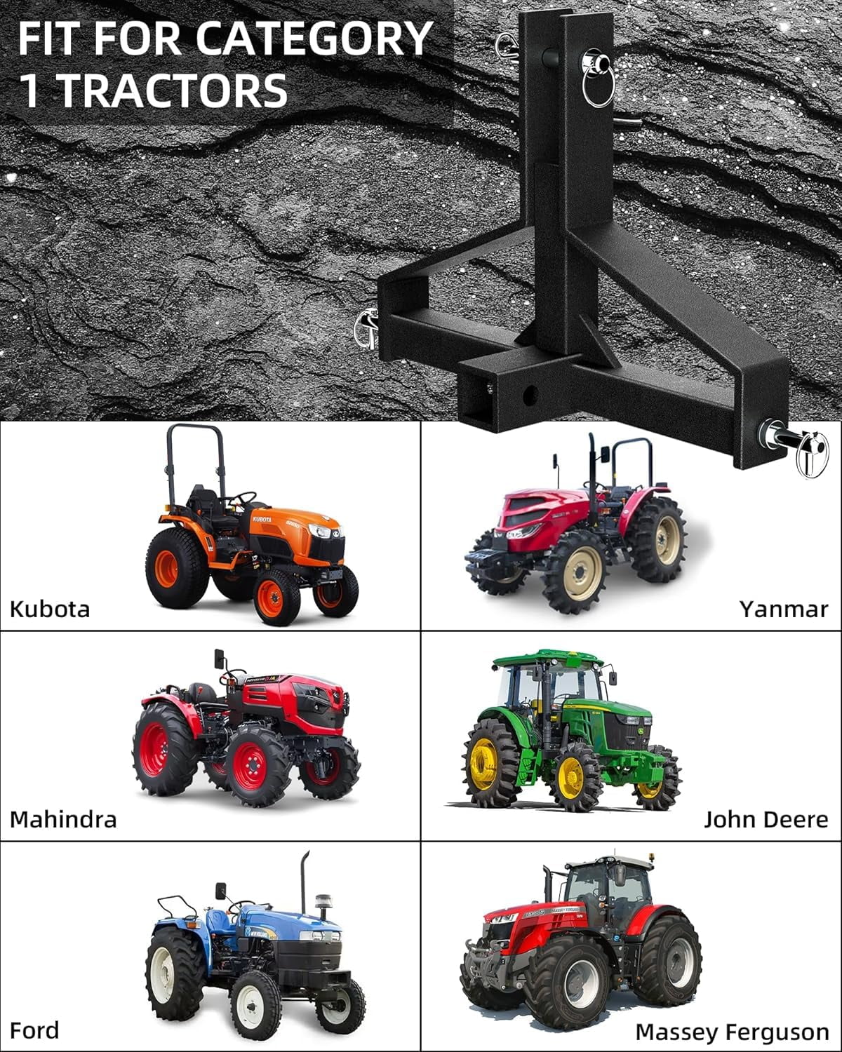 - Universal Compatibility: Our 3 Point 2″ Trailer Hitch Receiver is designed for compatibility with Class 1 tractors, including Kubota, BX, LM25H, WLM, NorTrac, Yanmar, Kioti, Cat, and John Deere models, making it ideal for heavy-duty tasks in industrial and construction settings. Note: It is not compatible with John Deere’s imatch system.