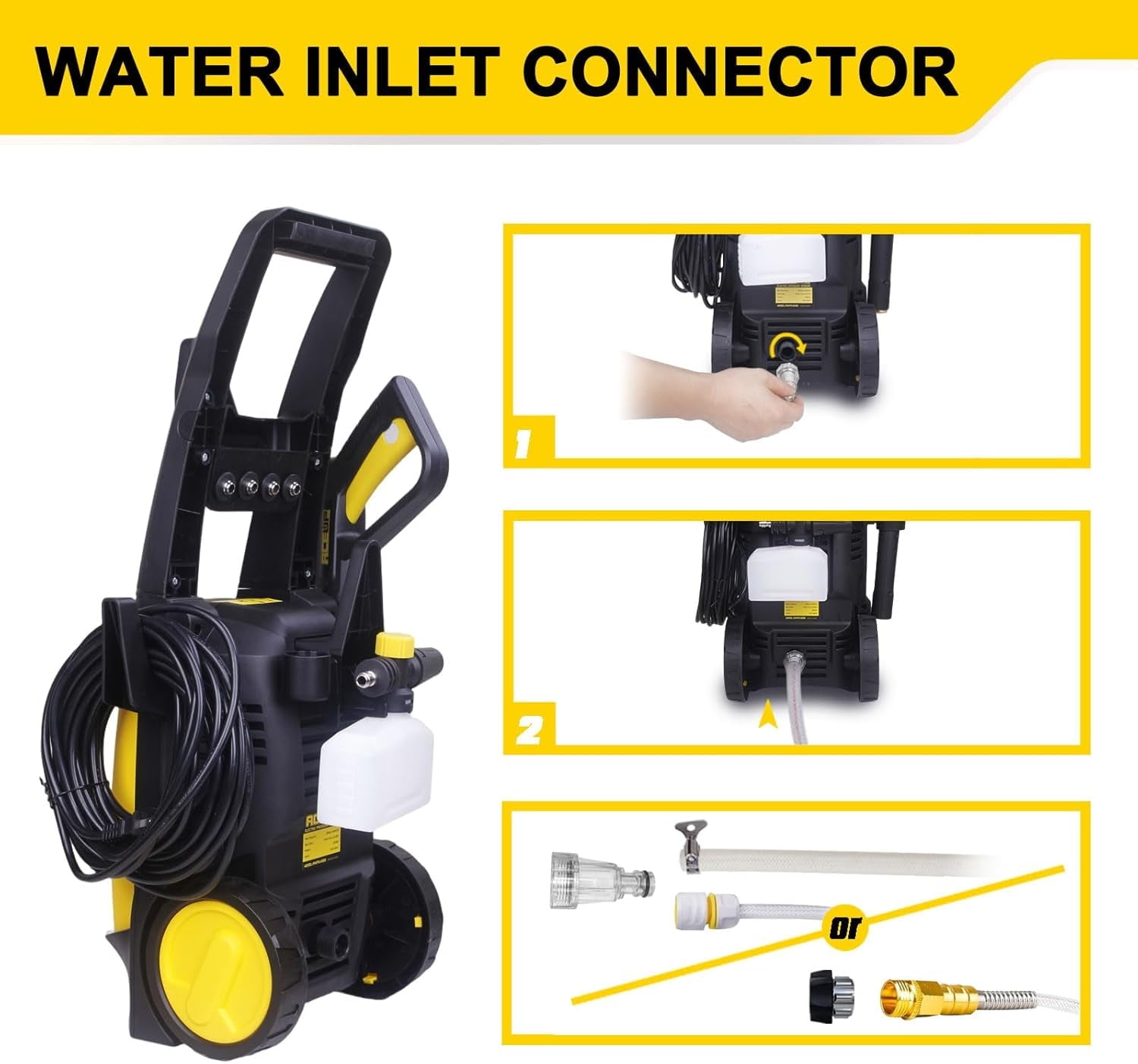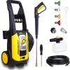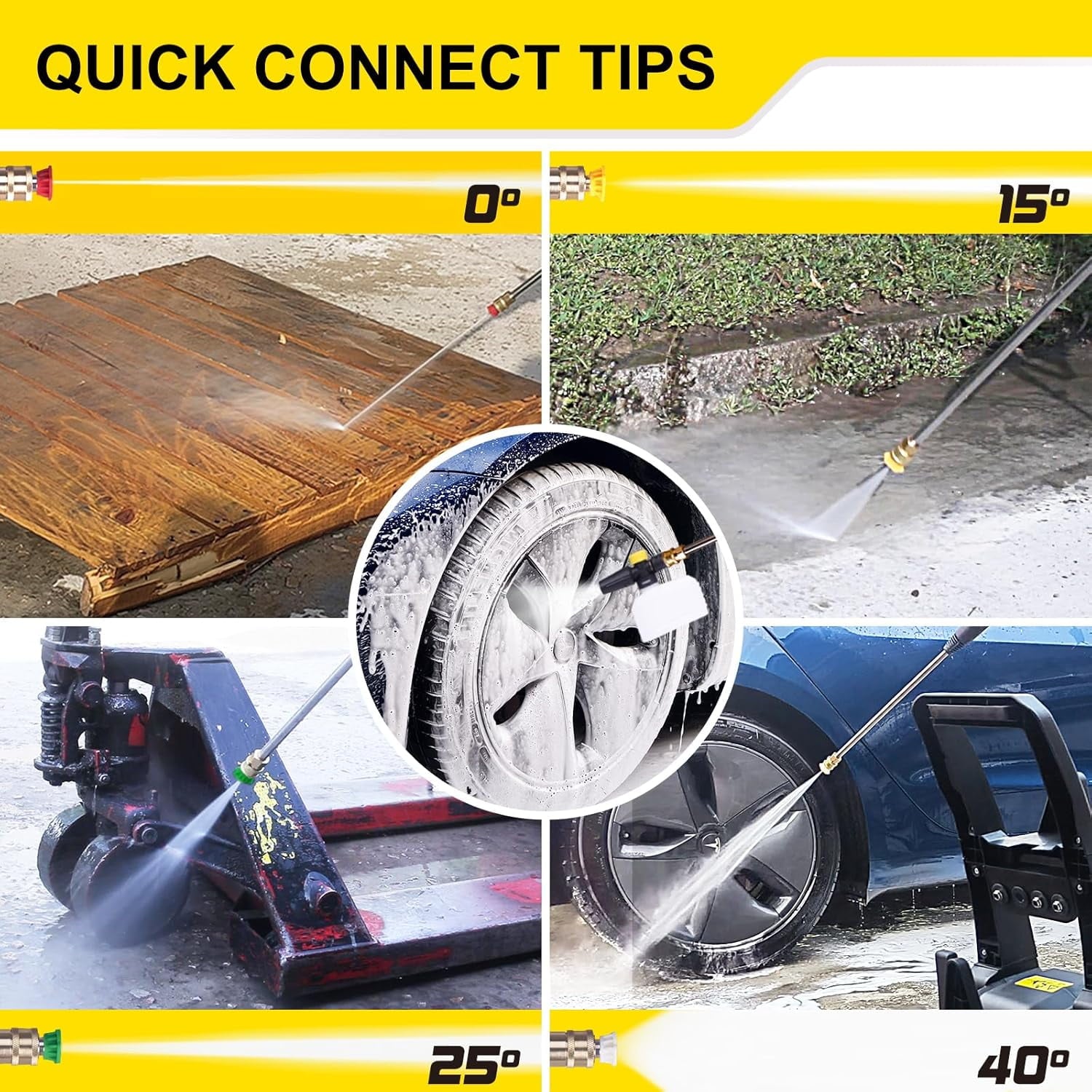- Comes with a 36-foot power cable, 23-foot high-pressure hose, and four quick-connect tips (0°, 15°, 25°, 40°) for versatile cleaning options, along with a foam nozzle and foam cannon for added cleaning power.