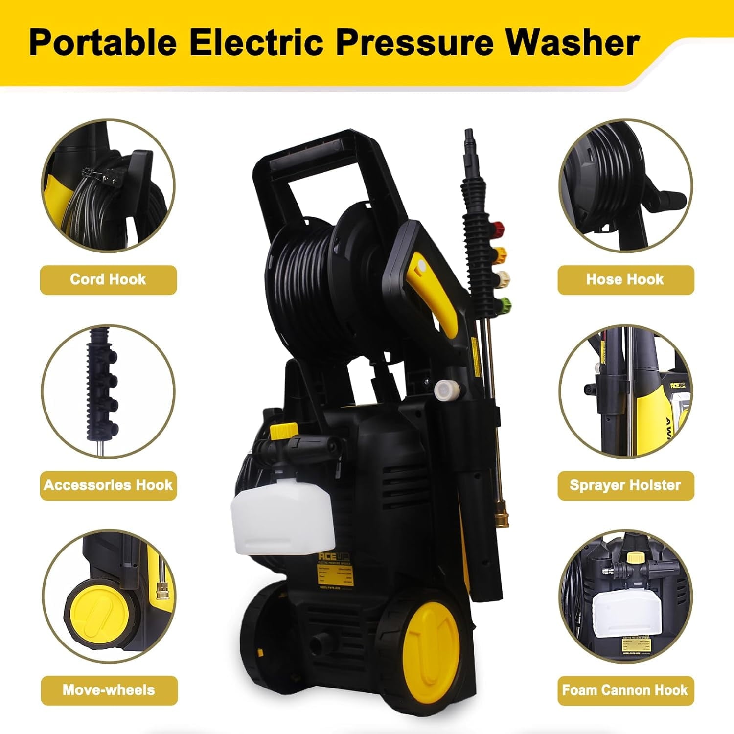 - Equipped with a 120V power supply and a convenient handle, making it easy to maneuver and use for cleaning cars, bicycles, fences, boats, and yards.